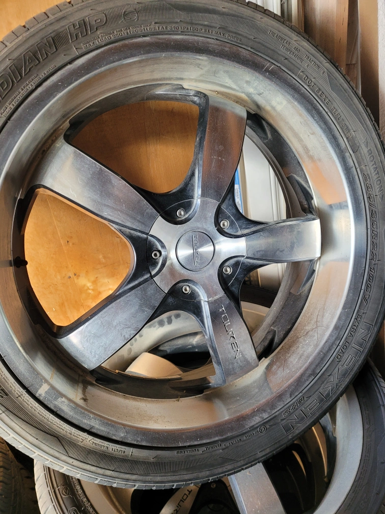 10Selling a set of used Touren rims, needs new tires. The tire size is 285/35R22.