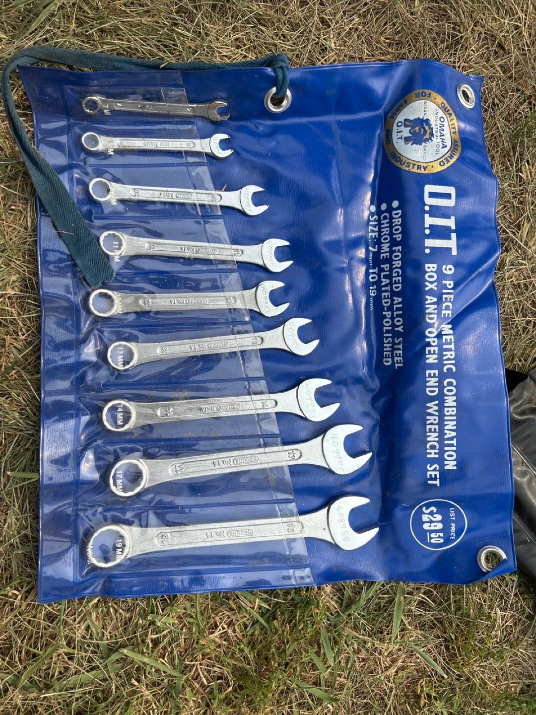 Selling an O.I.T. 9 piece metric combination wrench set. The set includes wrenches ranging in size from 7mm to 19mm. They are made of drop forged alloy steel and are chrome plated and polished. Originally listed for $29.50.