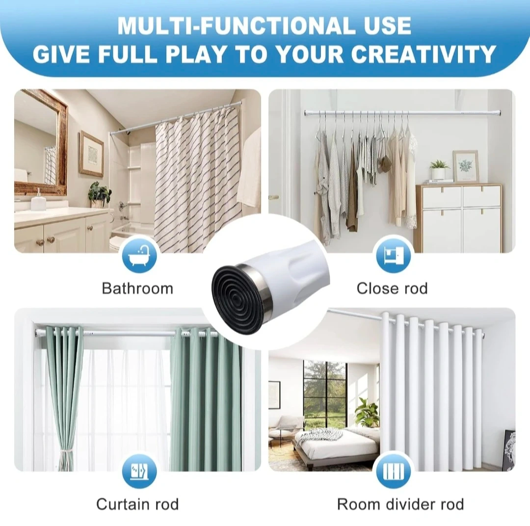 This rod is multi-functional and can be used in the bathroom, as a closet rod, a curtain rod, or even as a room divider rod. Adjustable length 42"-115"