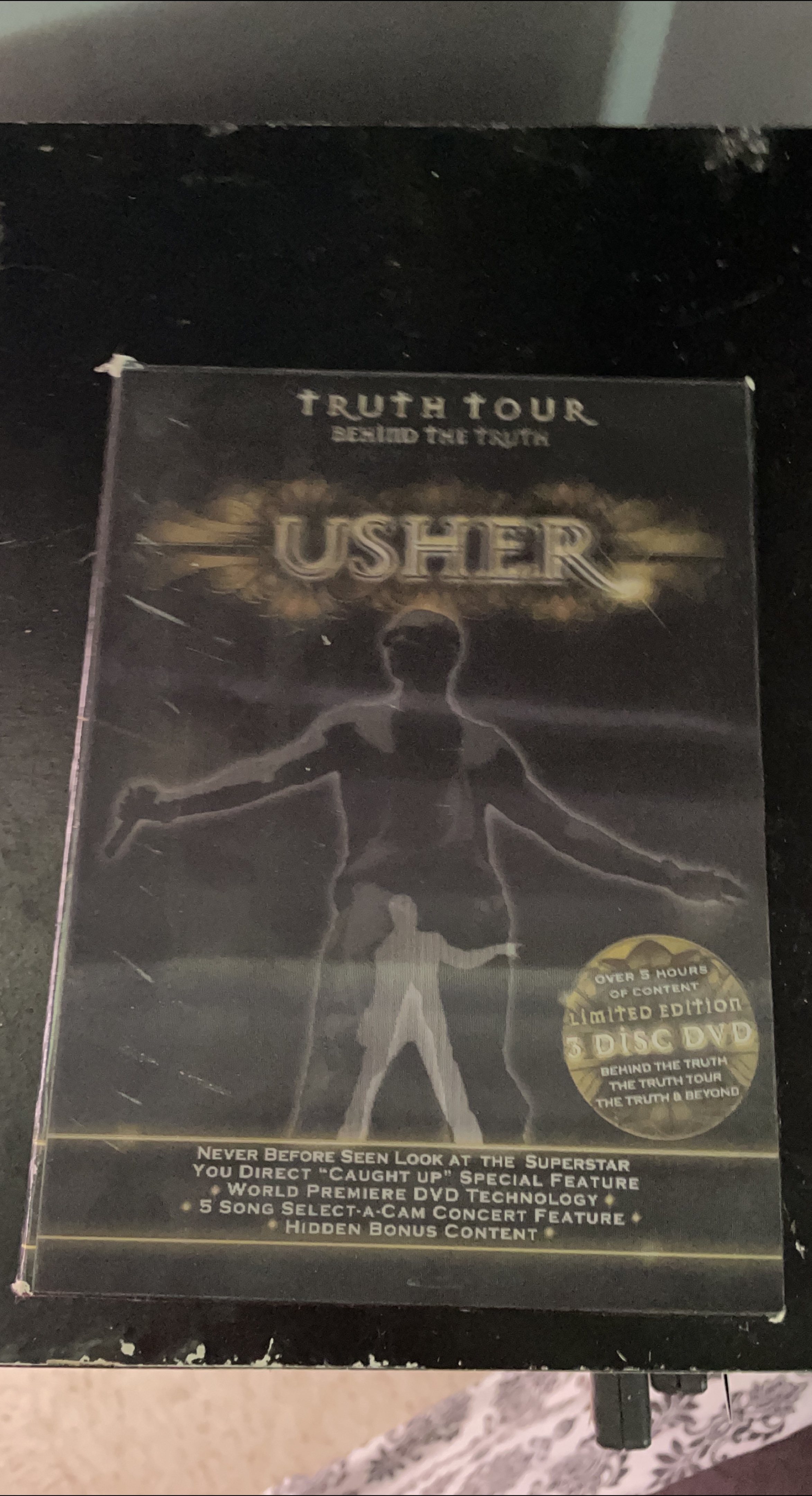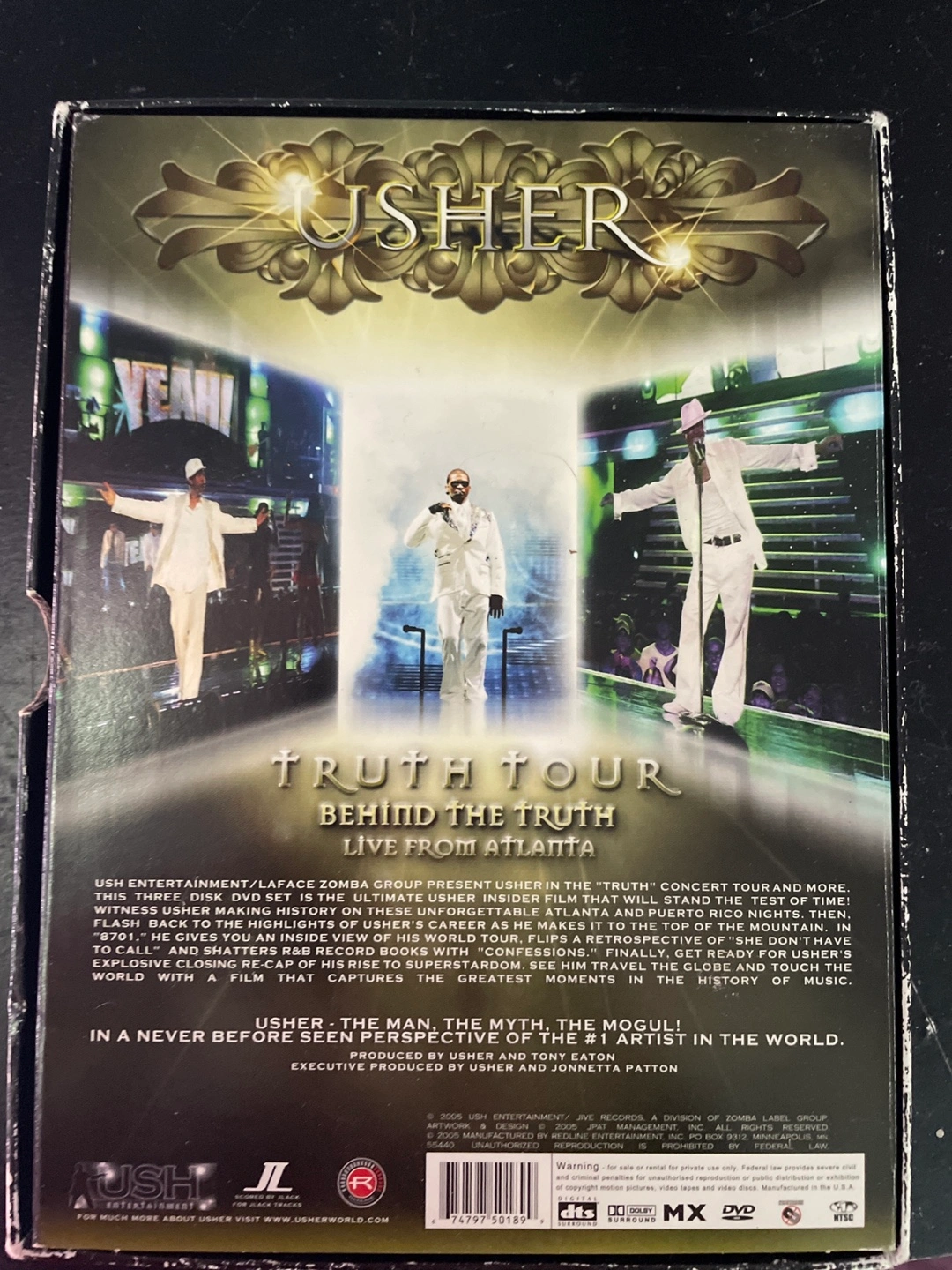 Selling the Usher Truth Tour: Behind the Truth Live from Atlanta DVD set. It's a limited edition 3-disc DVD set. Includes world premiere DVD technology and 2 song select concert feature. Also has hidden bonus content!