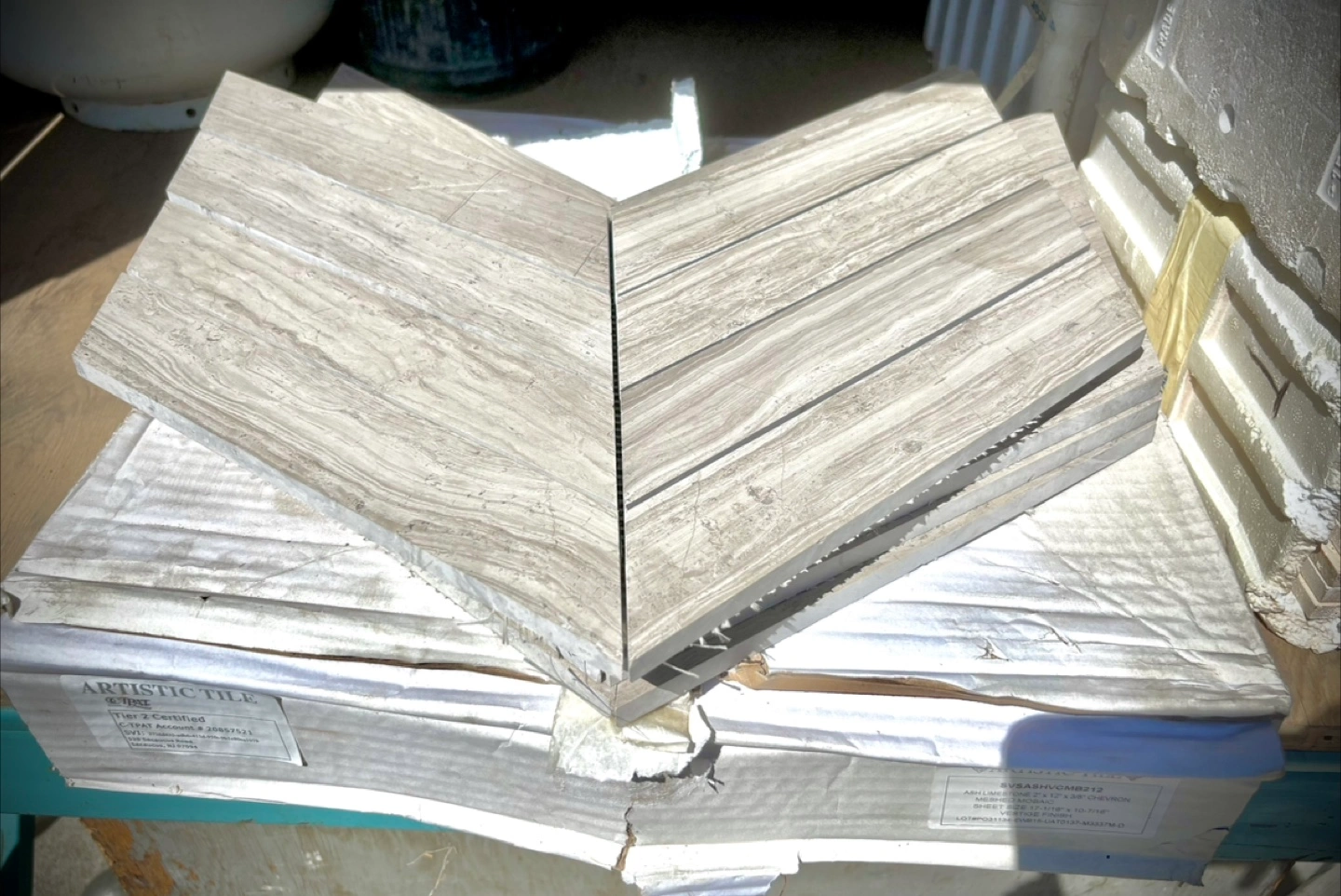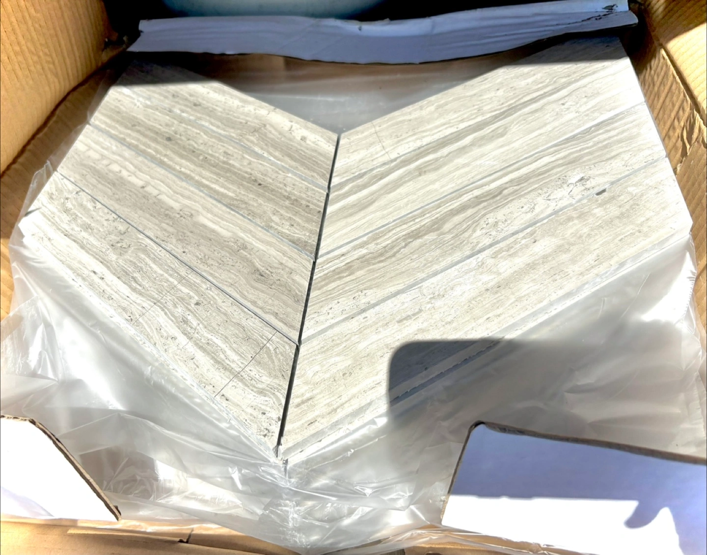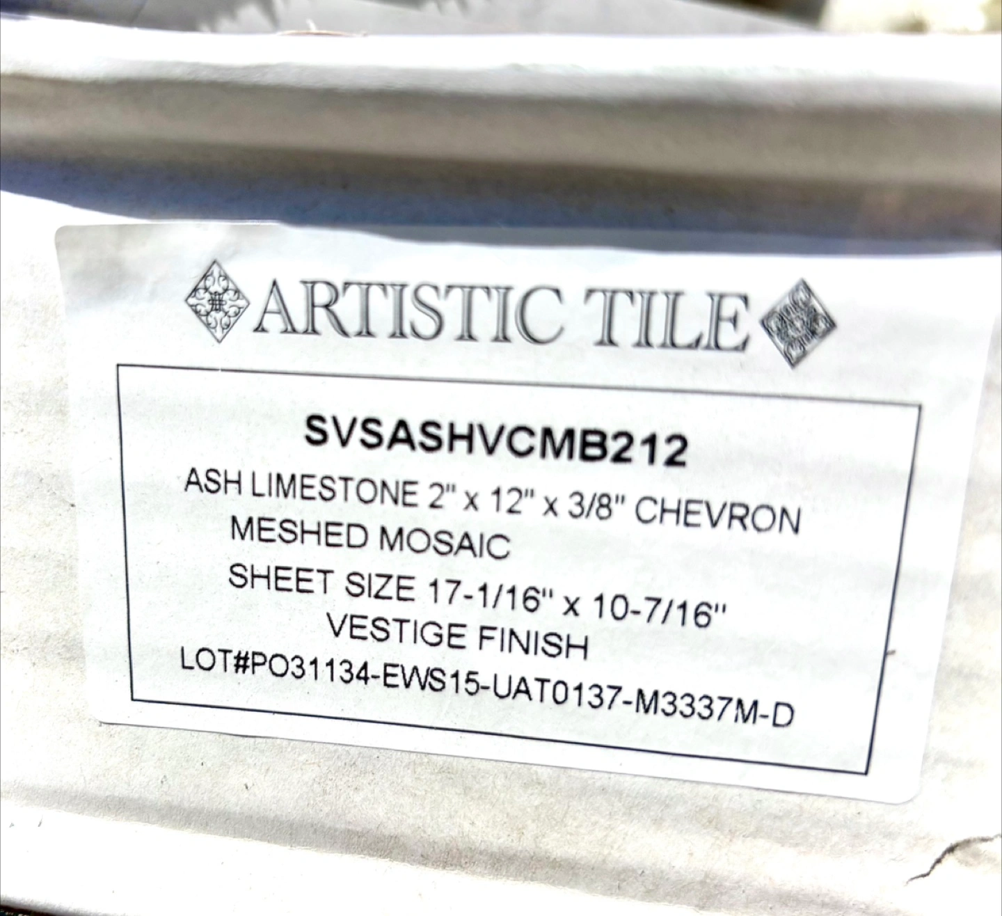 Artistic Tile Ash Limestone Chevron Meshed Mosaic