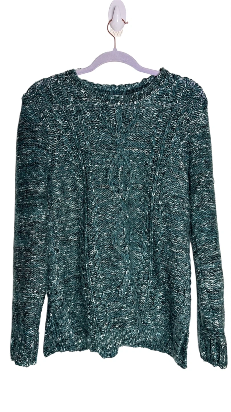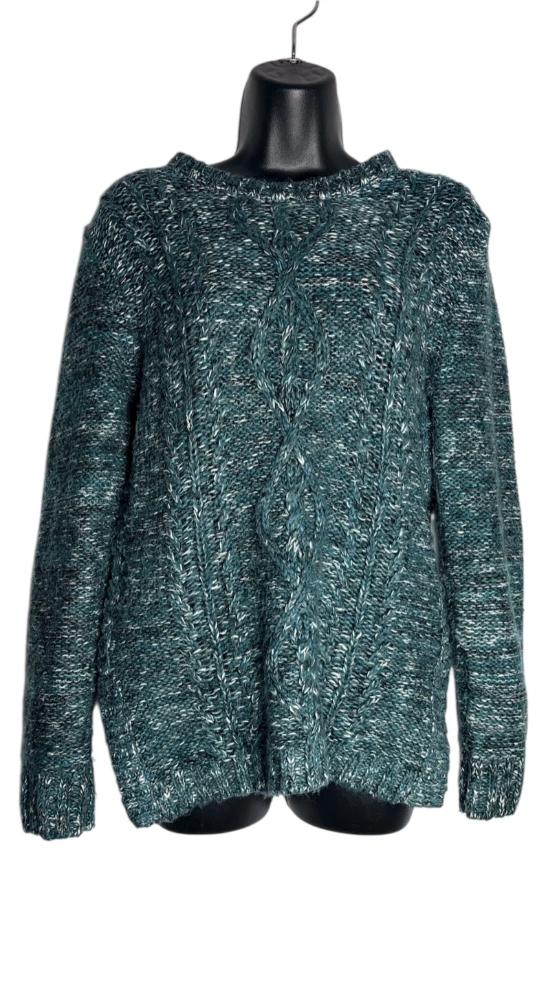 Stay cozy and stylish with this cable knit sweater. Perfect for layering in cooler weather.