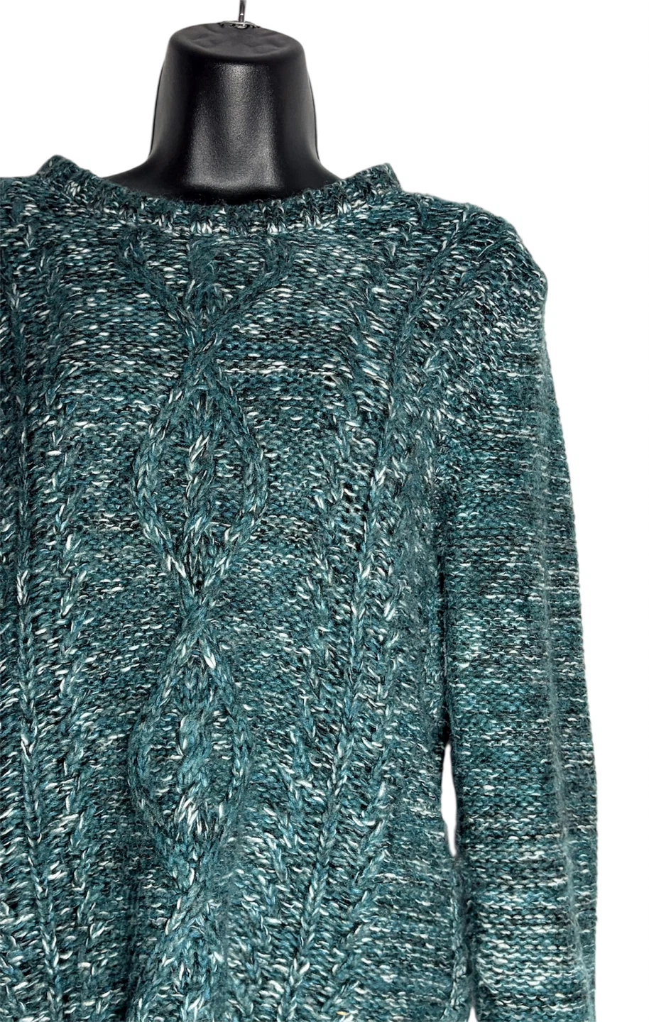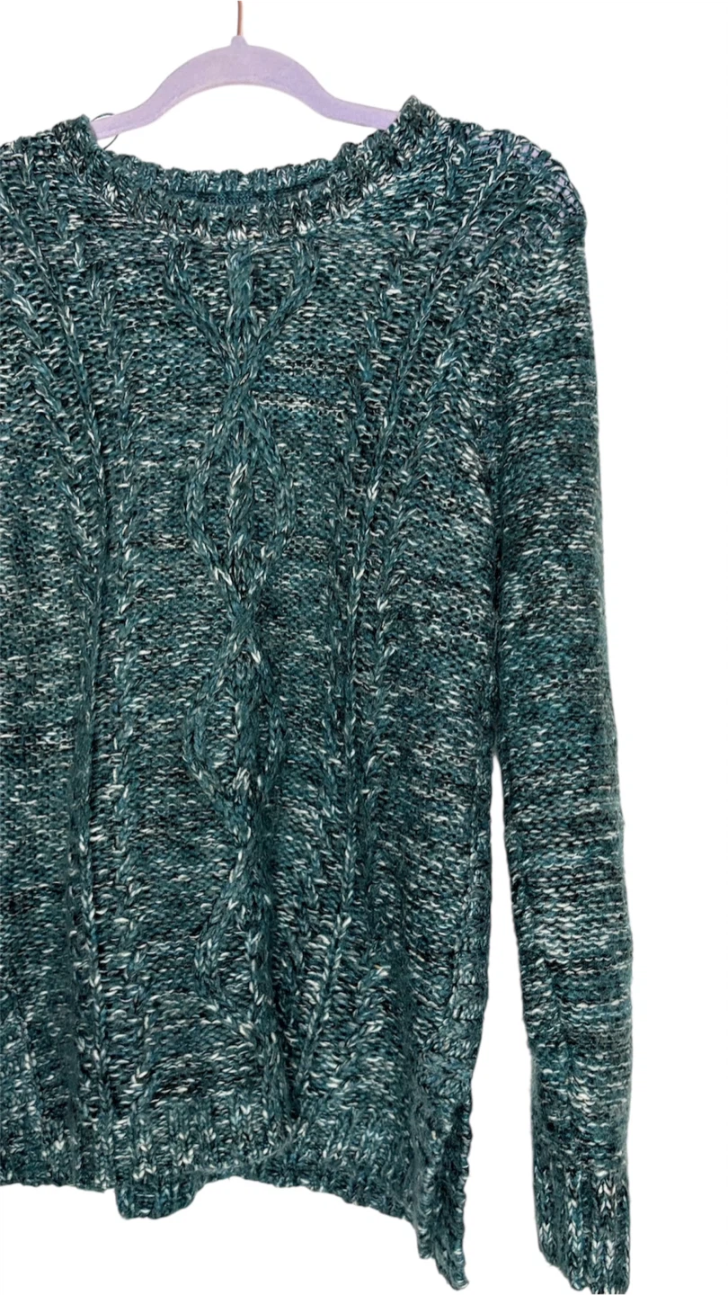 Stay cozy and stylish with this cable knit sweater. Perfect for layering in cooler weather.