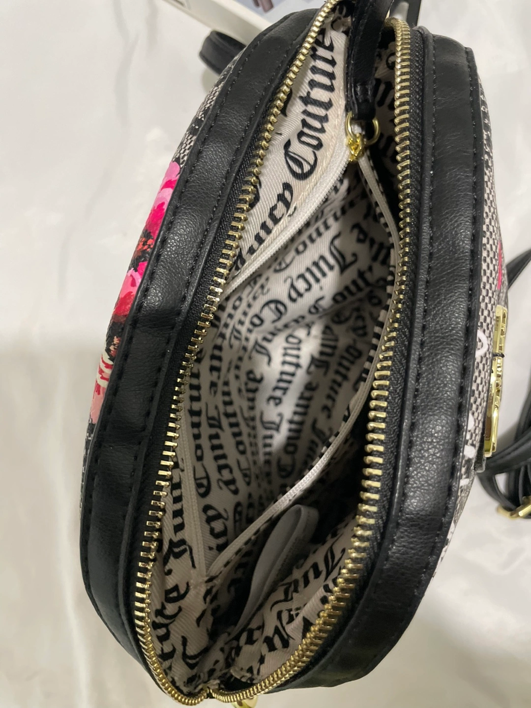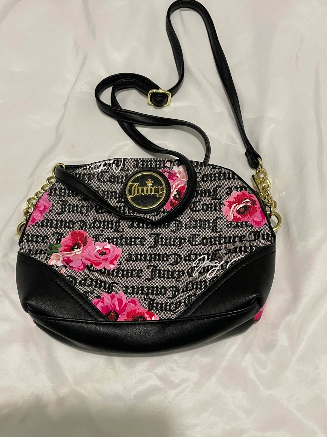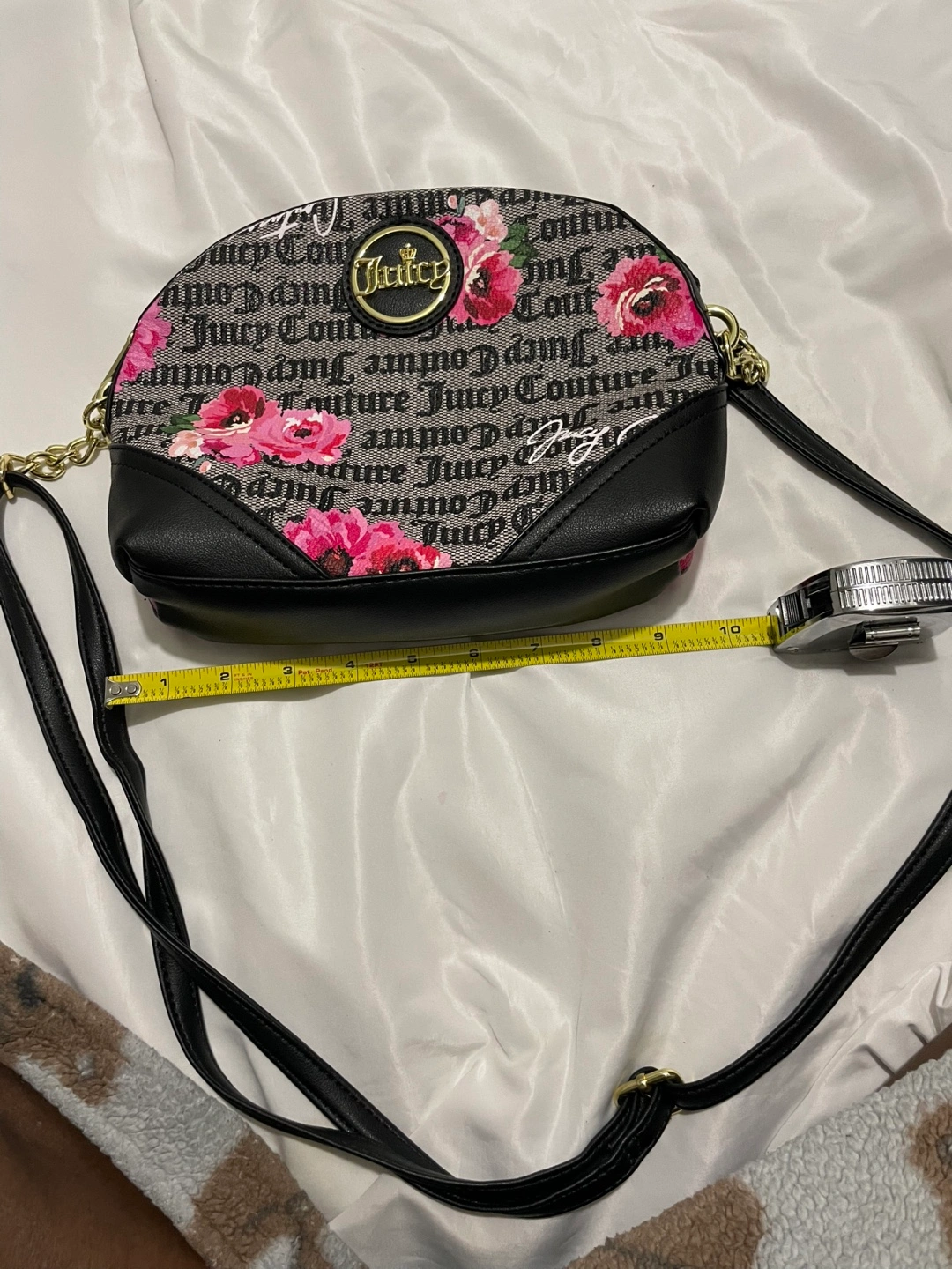 This chic Juicy Couture crossbody bag features a unique dome shape in a sleek black color, adorned with vibrant pink accents. The gold-toned hardware adds a touch of elegance, making it a perfect accessory for any occasion. Its compact size is ideal for carrying your essentials in style. Like new in goody condition no rips no scratches no imperfections.product dimensions 11.54 x 7.48 x 4.21 inches (29.3 x 19 x 10.7 cm) (29.3 x 19 x 10.7 cm); 14.89 Ounces (422.13 grams) (423 grams) product weight 0.93 lbs(0.42 kg) Juicy Couture If The Crown Fits Crossbody Pick Your Petal On BeigeBlack Status One Size This chic Juicy Couture crossbody bag features a unique dome shape in a sleek black color, adorned with vibrant pink accents. The gold-toned hardware adds a touch of elegance, making it a perfect accessory for any occasion. Its compact size is ideal for carrying your essentials in style. Like new in goody condition no rips no scratches no imperfections.product dimensions 11.54 x 7.48 x 4.21 inches (29.3 x 19 x 10.7 cm) (29.3 x 19 x 10.7 cm); 14.89 Ounces (422.13 grams) (423 grams) product weight 0.93 lbs(0.42 kg) Juicy Couture If The Crown Fits Crossbody Pick Your Petal On BeigeBlack Status One Size
