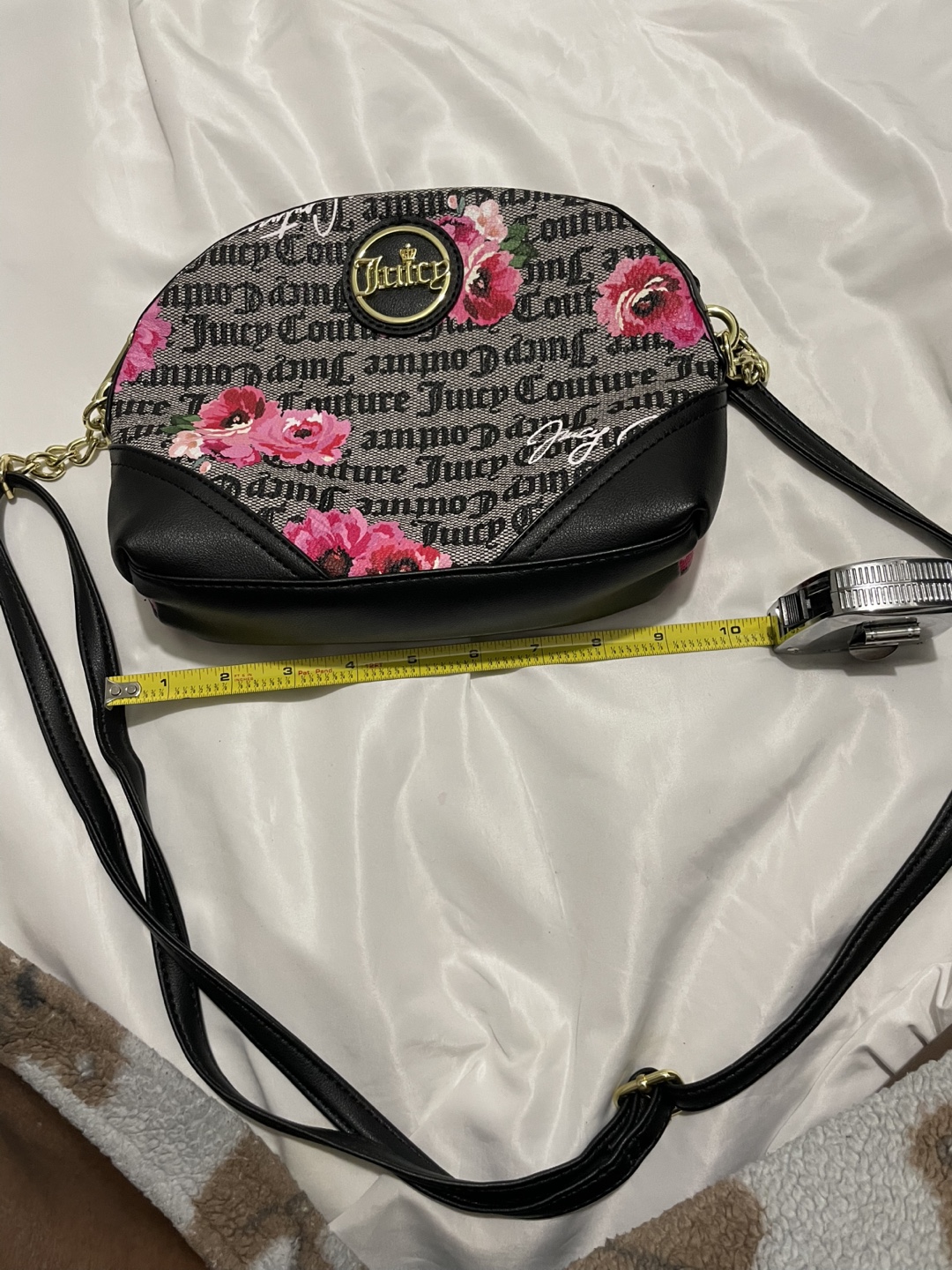 This chic Juicy Couture crossbody bag features a unique dome shape in a sleek black color, adorned with vibrant pink accents. The gold-toned hardware adds a touch of elegance, making it a perfect accessory for any occasion. Its compact size is ideal for carrying your essentials in style. Like new in goody condition no rips no scratches no imperfections.product dimensions 11.54 x 7.48 x 4.21 inches (29.3 x 19 x 10.7 cm) (29.3 x 19 x 10.7 cm); 14.89 Ounces (422.13 grams) (423 grams) product weight 0.93 lbs(0.42 kg) Juicy Couture If The Crown Fits Crossbody Pick Your Petal On BeigeBlack Status One Size This chic Juicy Couture crossbody bag features a unique dome shape in a sleek black color, adorned with vibrant pink accents. The gold-toned hardware adds a touch of elegance, making it a perfect accessory for any occasion. Its compact size is ideal for carrying your essentials in style. Like new in goody condition no rips no scratches no imperfections.product dimensions 11.54 x 7.48 x 4.21 inches (29.3 x 19 x 10.7 cm) (29.3 x 19 x 10.7 cm); 14.89 Ounces (422.13 grams) (423 grams) product weight 0.93 lbs(0.42 kg) Juicy Couture If The Crown Fits Crossbody Pick Your Petal On BeigeBlack Status One Size