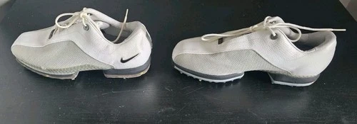 Nike Air Zoom Tiger Woods golf shoes, men’s size 9W. Classic white leather upper with mesh panels for breathability, full-length Zoom Air cushioning, and durable spiked sole for superior grip and performance. Pre-owned, very good overall condition. Uppers are clean with minor wear. Soles and spikes in good shape, plenty of life left. Perfect for your next round — a high-quality, tour-proven shoe at a great price!