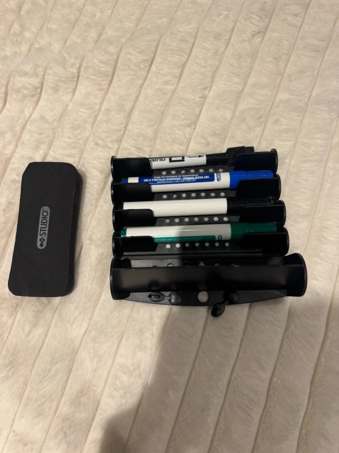 Selling a Quartet dry erase board! It comes with a set of dry erase markers and an eraser. Perfect for keeping track of your schedule or jotting down notes
