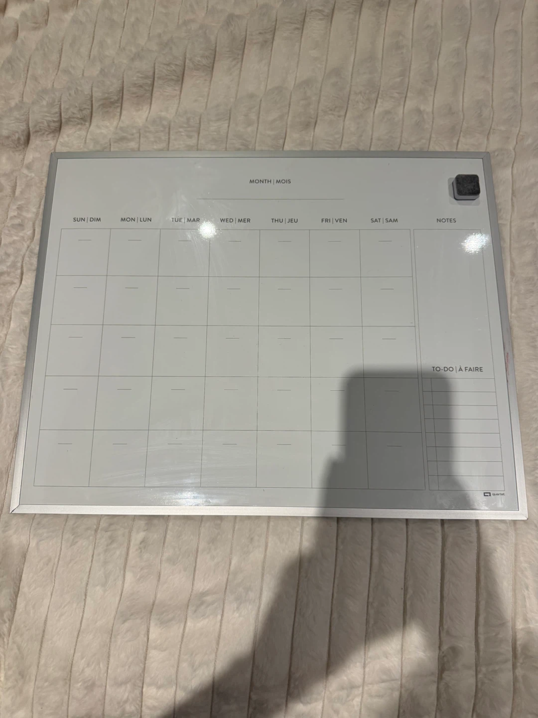 Selling a Quartet dry erase board! It comes with a set of dry erase markers and an eraser. Perfect for keeping track of your schedule or jotting down notes