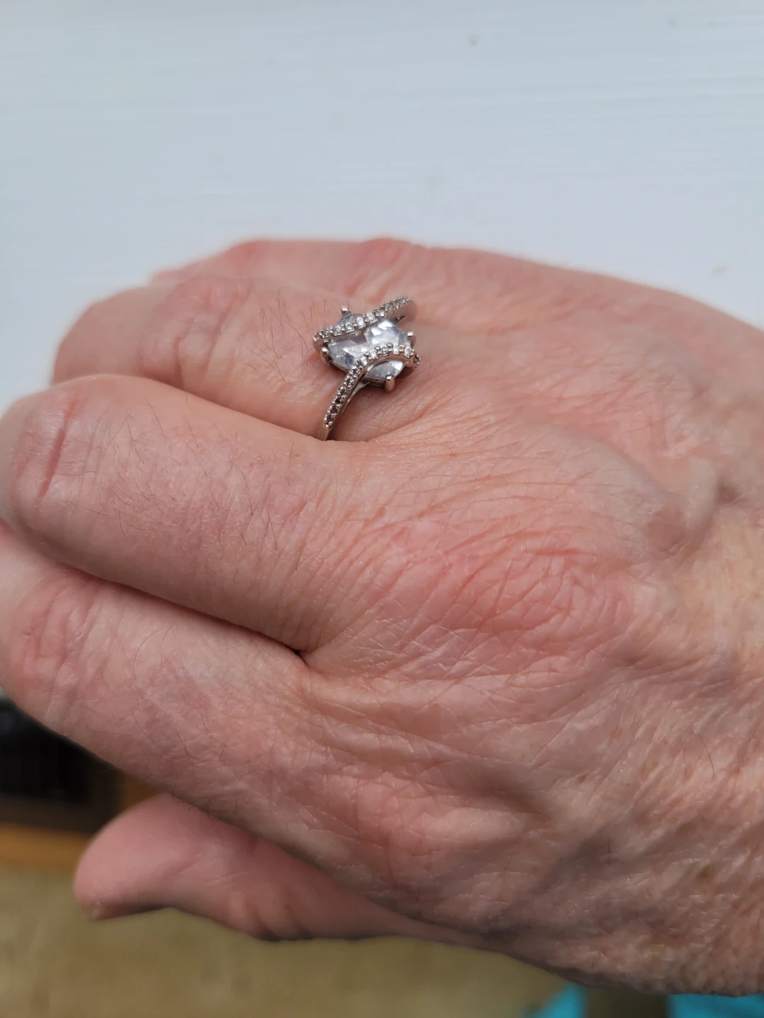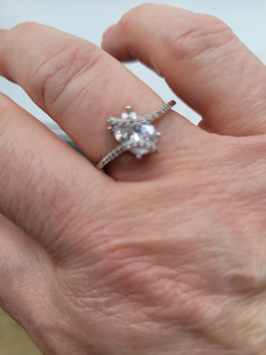 CZ faceted gemstone with smaller stones accenting the band. It's made .925 Sterling Silver sz 7.5 This would make a lovely addition to any jewellery collection!
