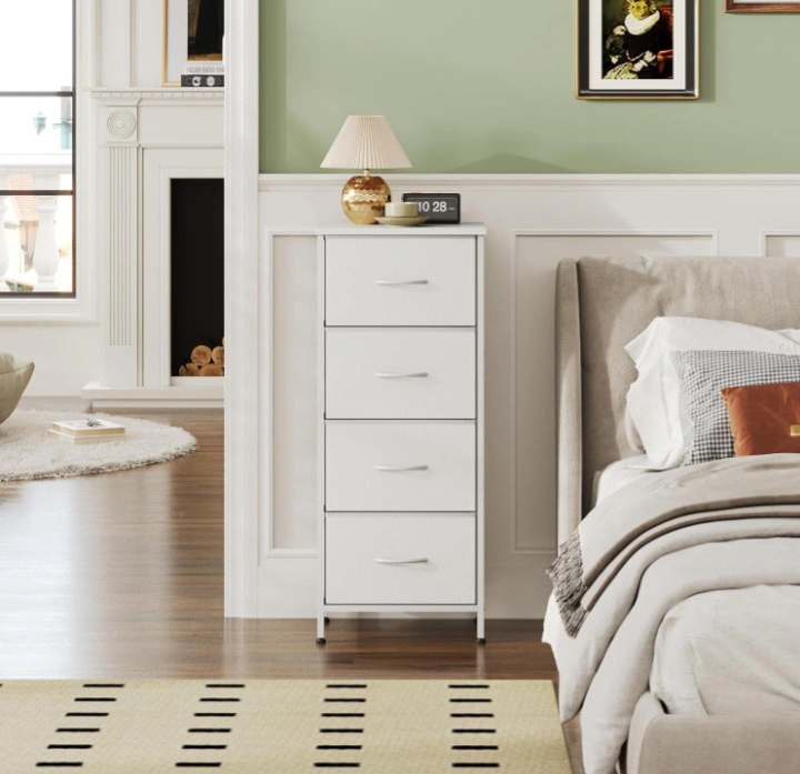 I'm selling a brand new SPNAUT 4-Drawer Tall Dresser in dark grey, still in its original box! It's a great space-saving solution for any room.