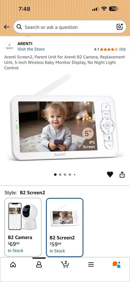Arenti Screen2 baby monitor display (no camera). Fully working, but has visible scratches on screen. Great as a replacement or extra monitor.