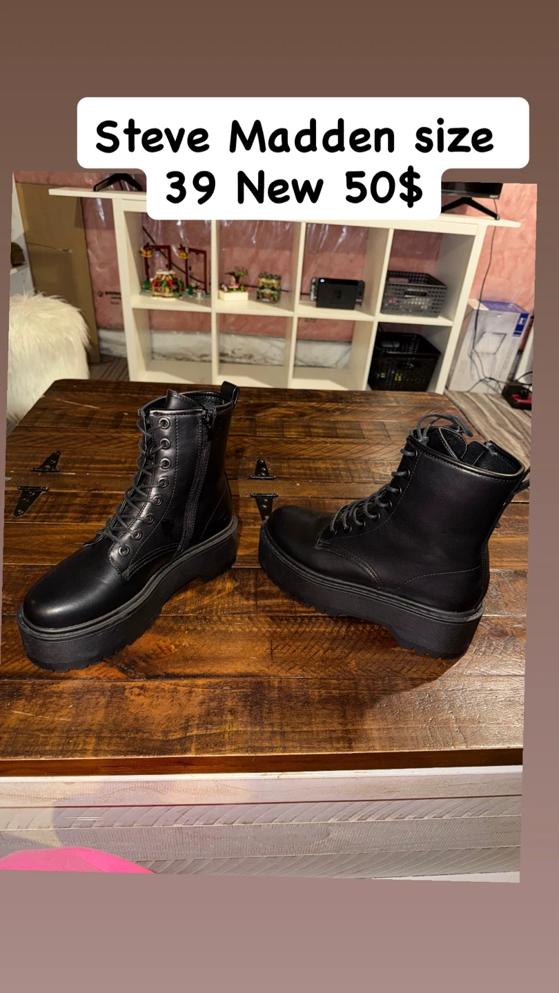 Black Leather Wedge Ankle Boots size 7