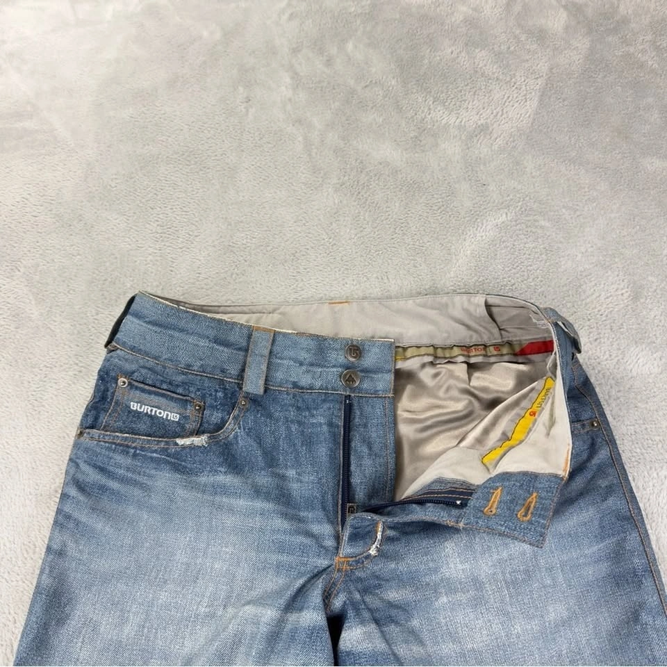 Burton Men's "The Jeans" Gore-tex Denim Snowboard Pants in good pre owned condition as shown in the photos with no flaws. Outershell: 100% polyester. Membrane: polytetrafluoroethylene. Made in Vietnam. Measurements: Waist 16.5", Length/Outseam 40", Rise 10", Inseam 30", Hips 21.5", Leg Opening 10.5". Size Small Men's (fits like 33 Waist x 30 Length). Color Blue. Brand Burton. See pics for reference.