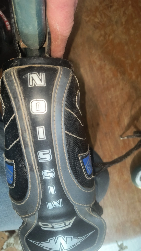 Black and grey inline skates with blue accents. The skates have wheels with bearings.Mission a50.size 11,too big for me hence why selling