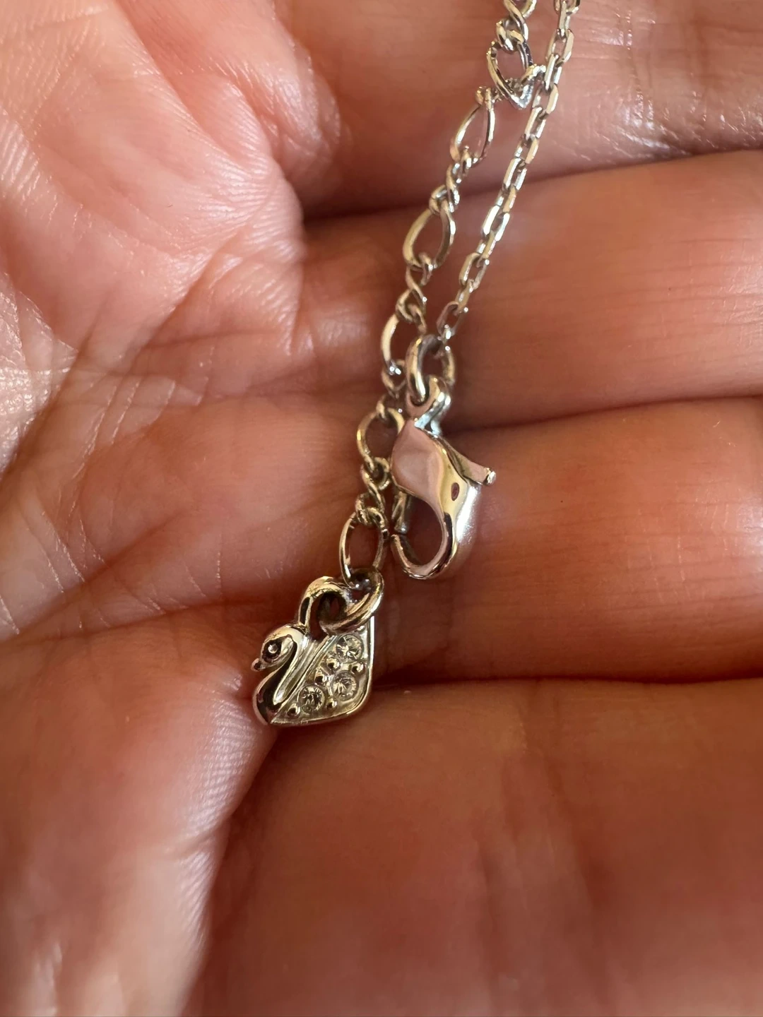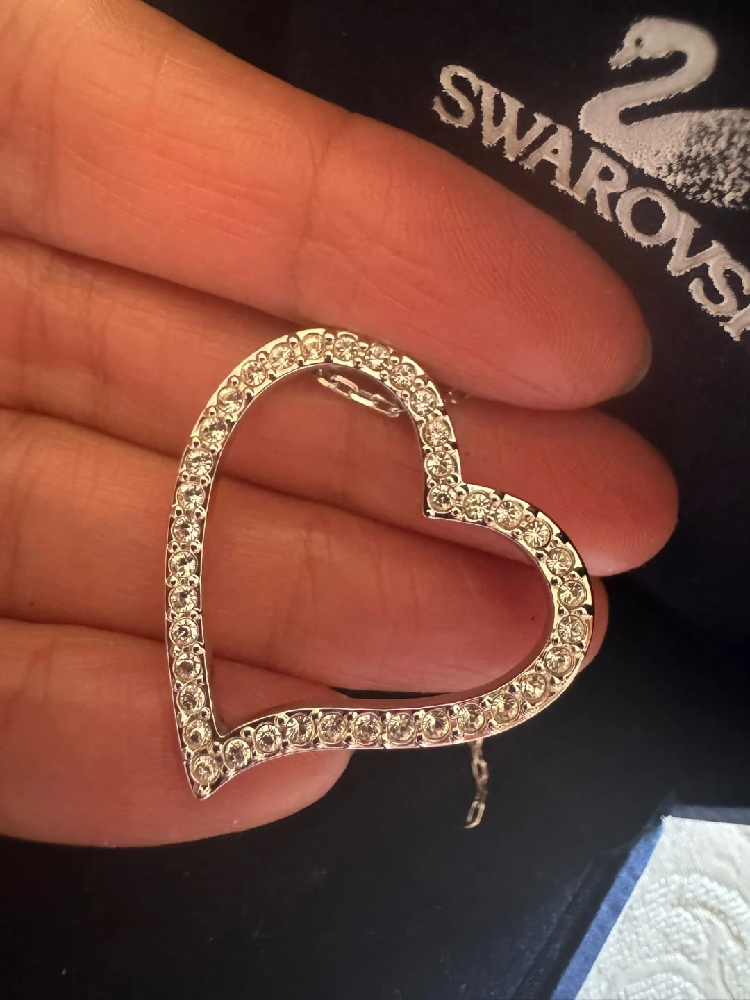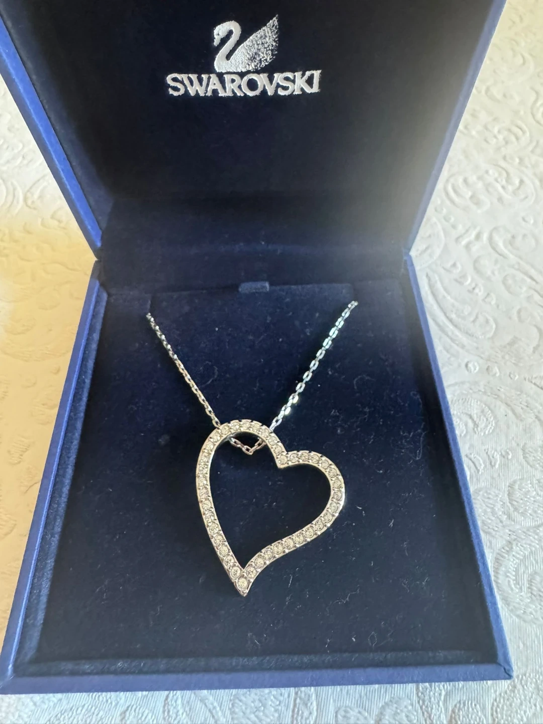 Sparkle with elegance with this Swarovski heart pendant necklace, a stunning piece that features delicate crystals and a timeless design. This necklace is in good condition, ready to add a touch of glamour to any outfit.