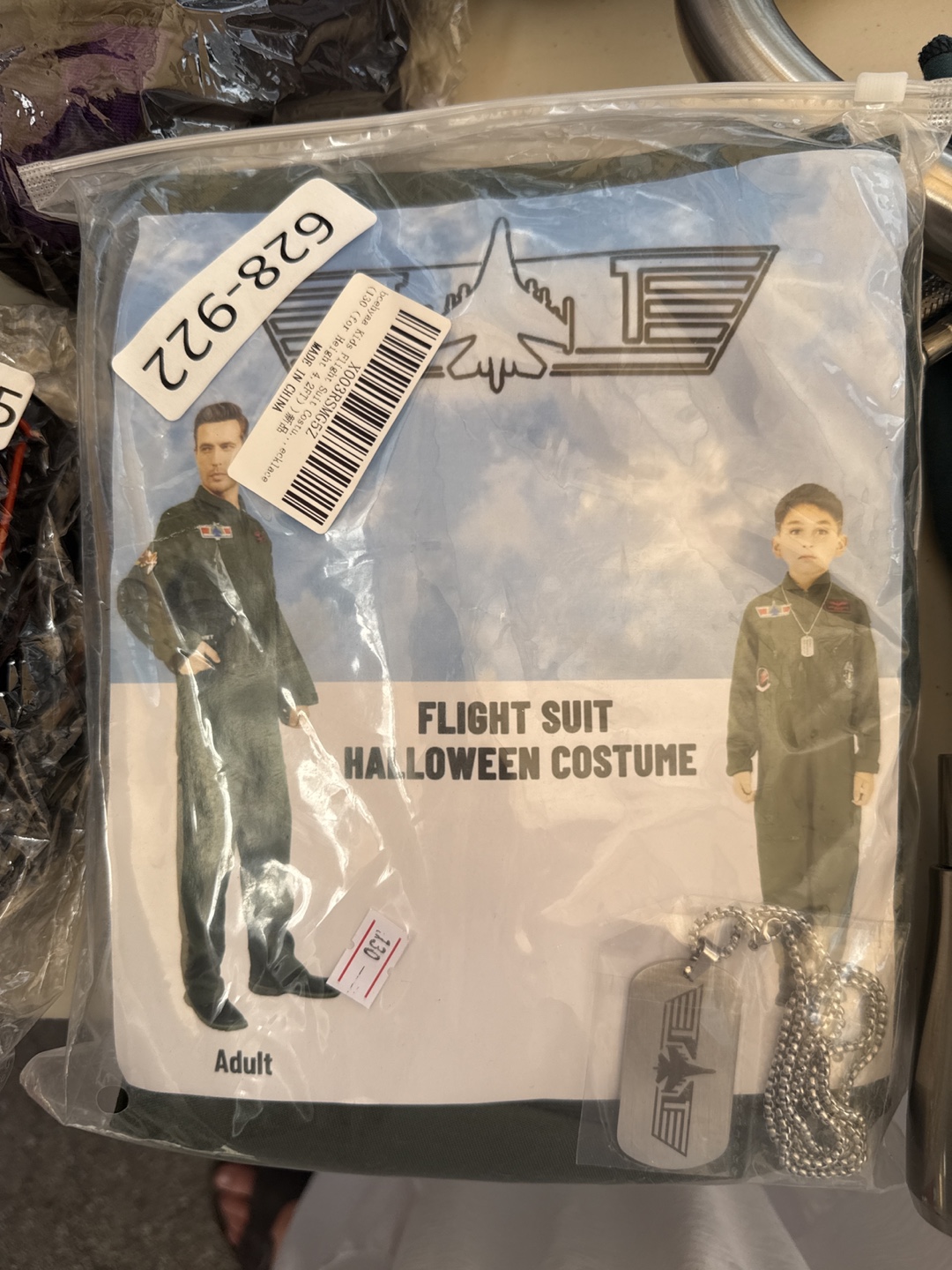 Get ready for Halloween with this Flight Suit costume! It includes the flight suit and a necklace. The size is 130 Brand New