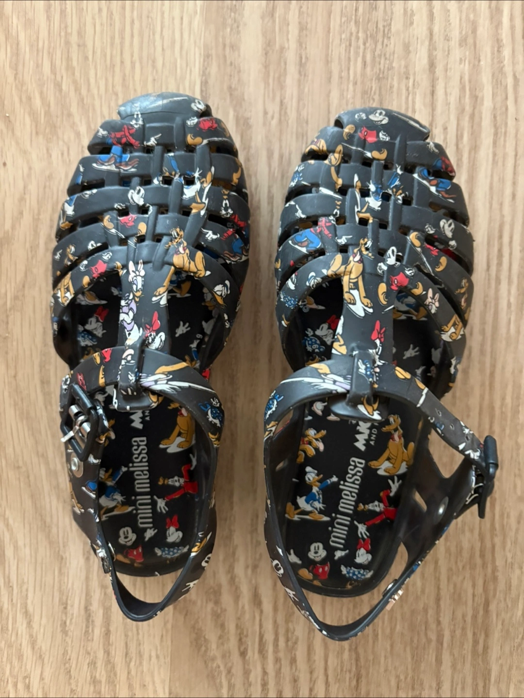 Adorable Mini Melissa jelly sandals. Mickey Mouse and friends print. Size 13USA/31EUR.