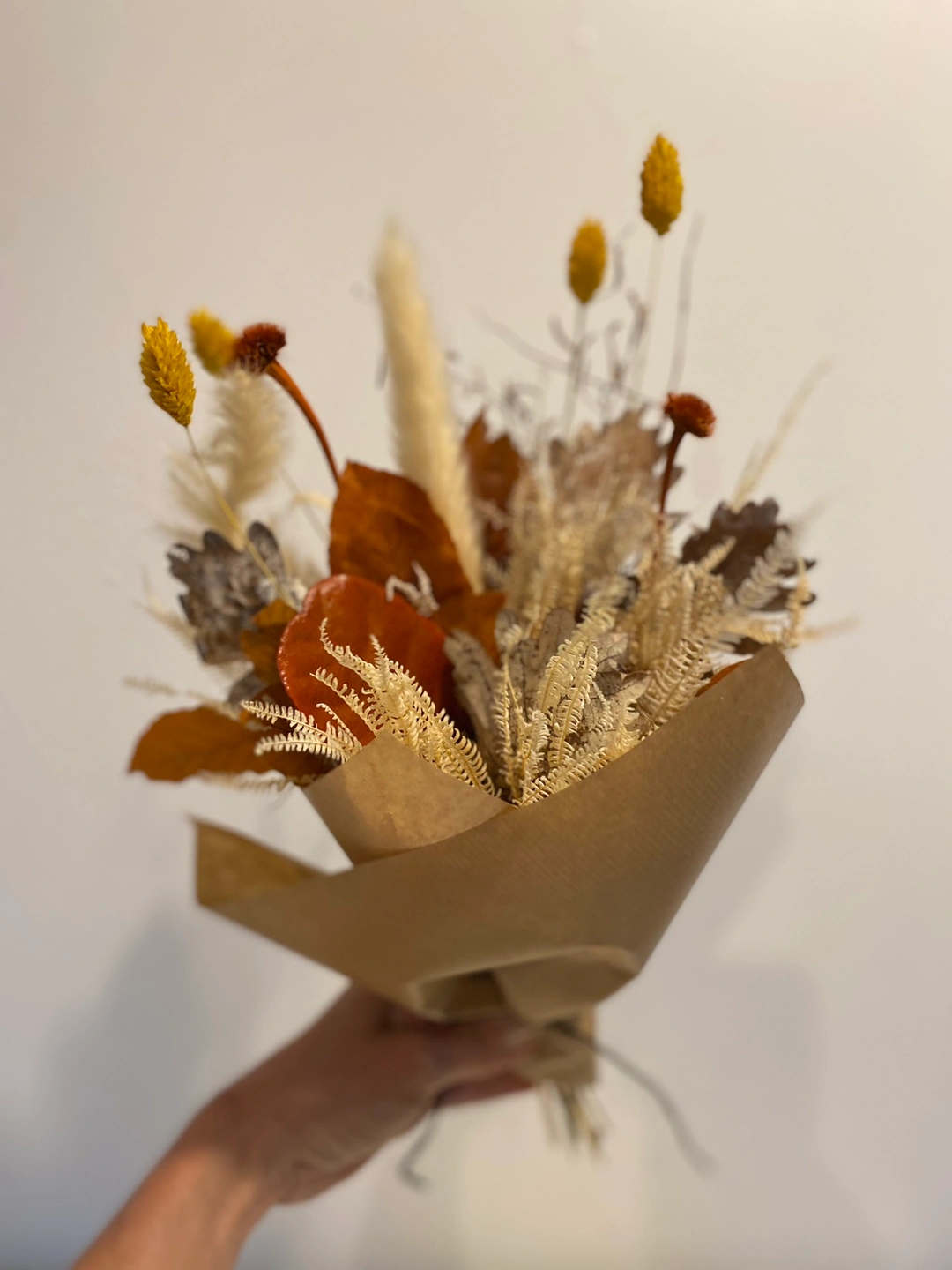 A beautiful mini Fall inspired bouquet of dried flowers. Fits in a bud vase. Perfect for home decor or a gift.