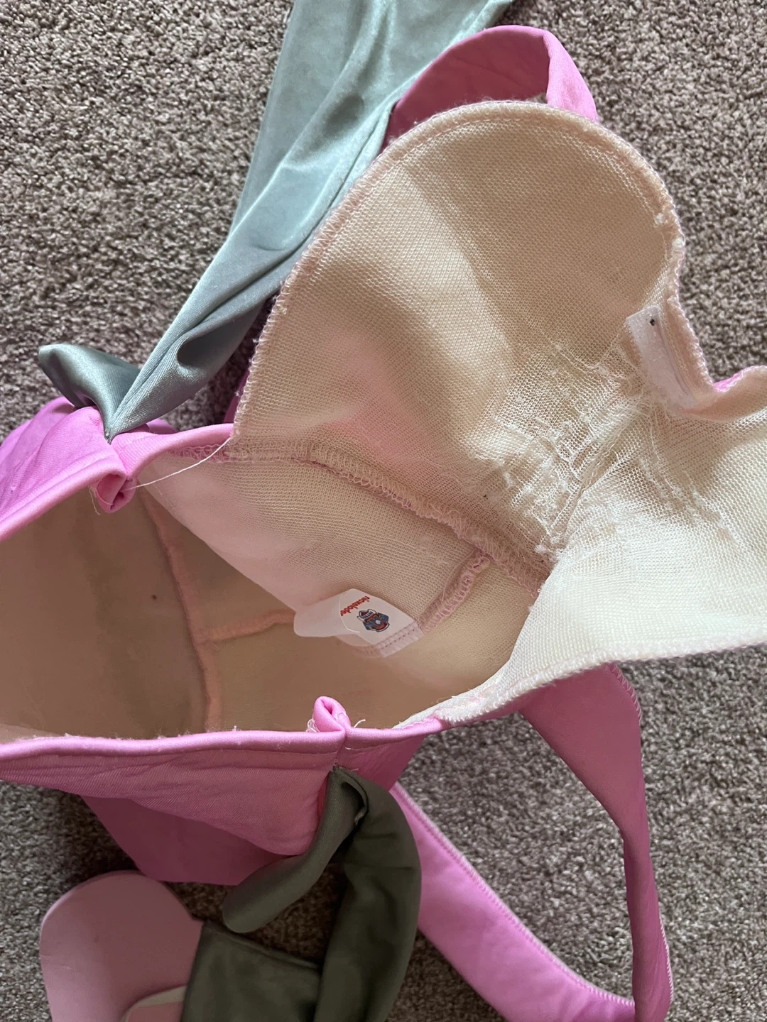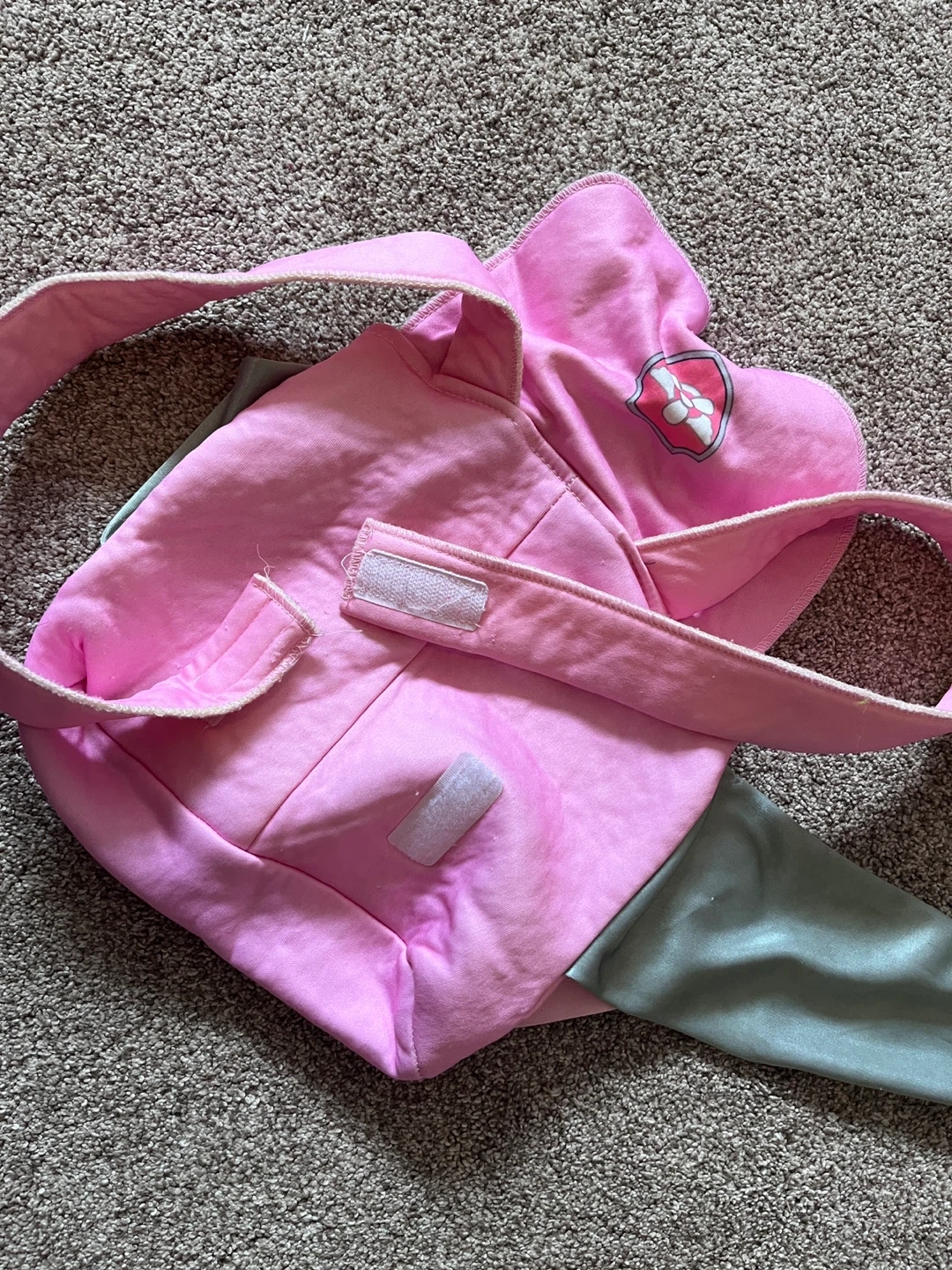 This Paw Patrol Skye costume accessory set includes a pink backpack with a Skye badge and attached grey wings with pink feet. It's designed for kids' dress-up play.
