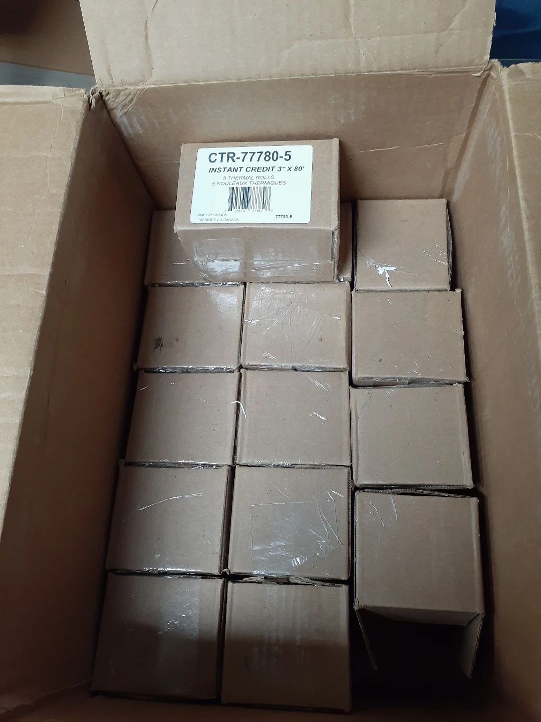 Bulk pack of Instant Credit CTR-77105-5 financial thermal rolls. Each box contains 5 rolls, measuring 3 1/8" x 50'. Made in Canada. Great for point-of-sale systems and receipts!