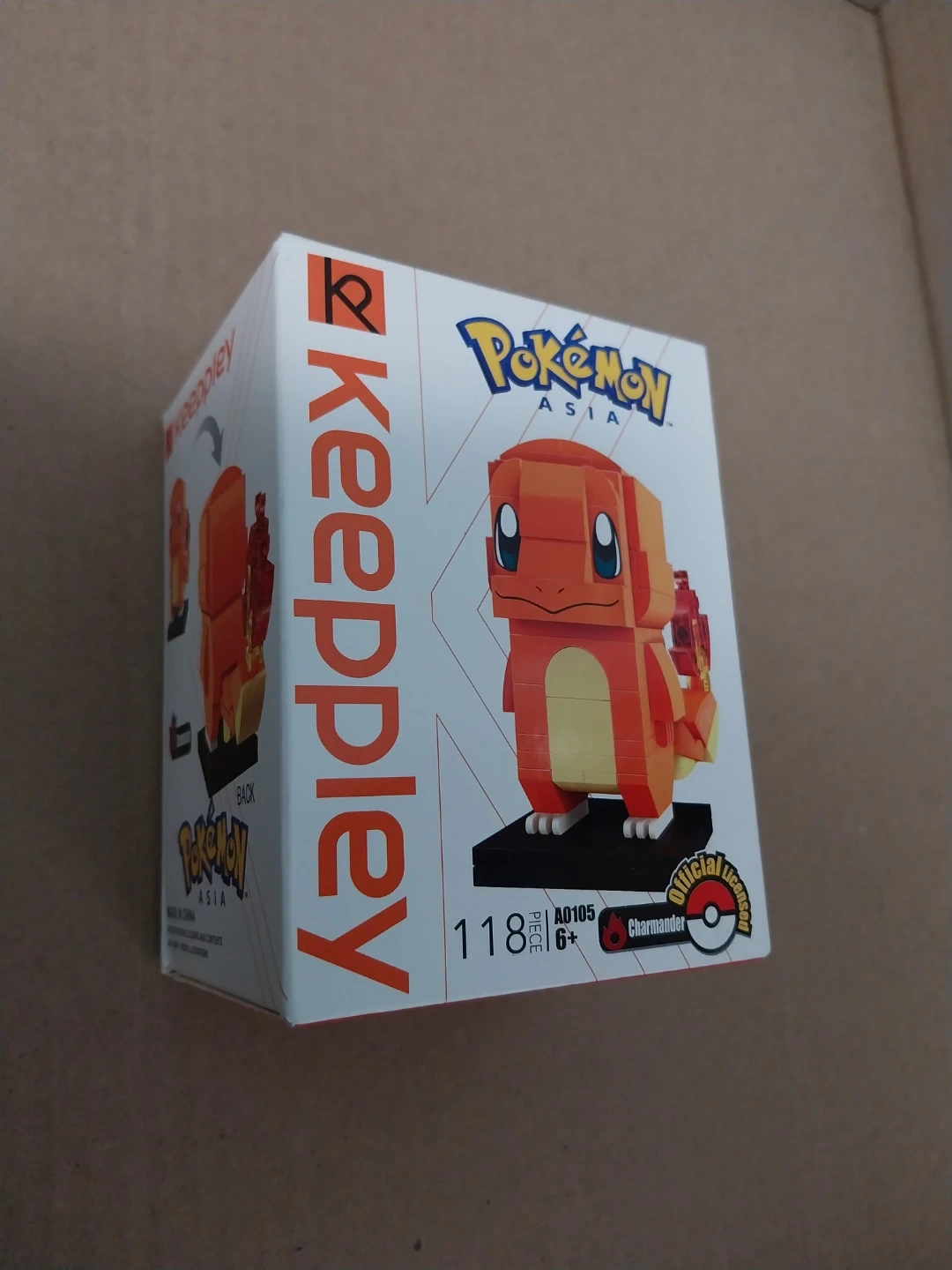 This Keep Pley building block kit features the popular Pokemon character Charmander. It includes 118 pieces and is officially licensed. Recommended for ages 6 and up.