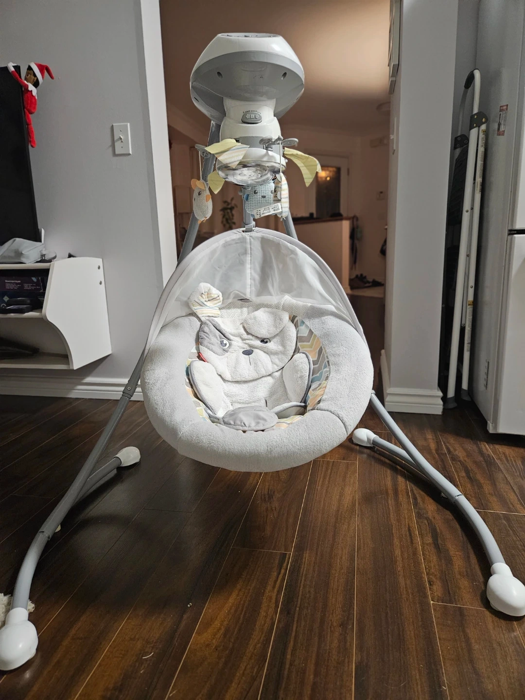Gently rock your little one with this Sweet Snuggle baby swing. It's designed with soft fabrics and plush toys to keep your baby comfortable and entertained. The swing offers multiple speeds and soothing sounds for a calming experience.