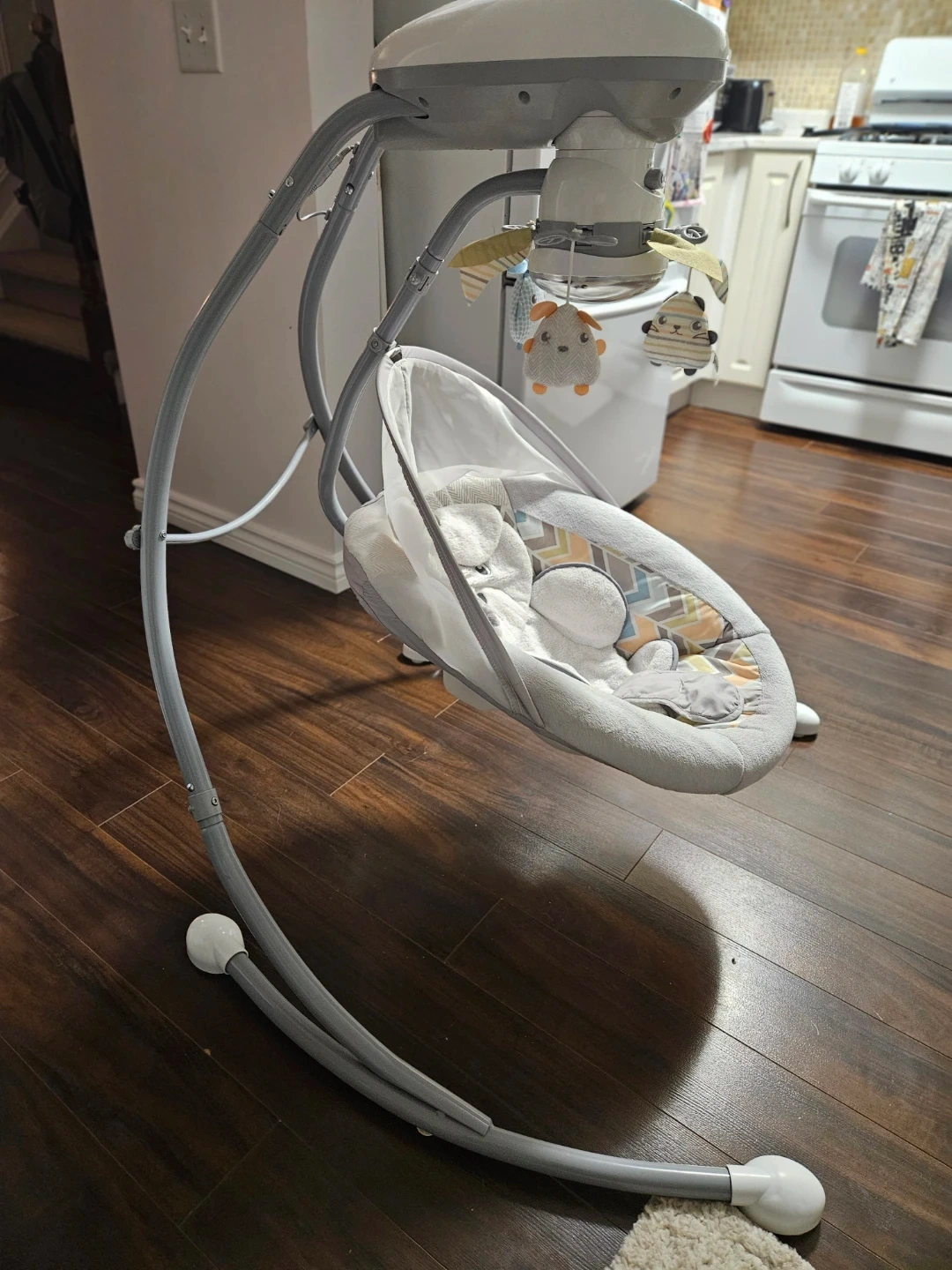 Gently rock your little one with this Sweet Snuggle baby swing. It's designed with soft fabrics and plush toys to keep your baby comfortable and entertained. The swing offers multiple speeds and soothing sounds for a calming experience.