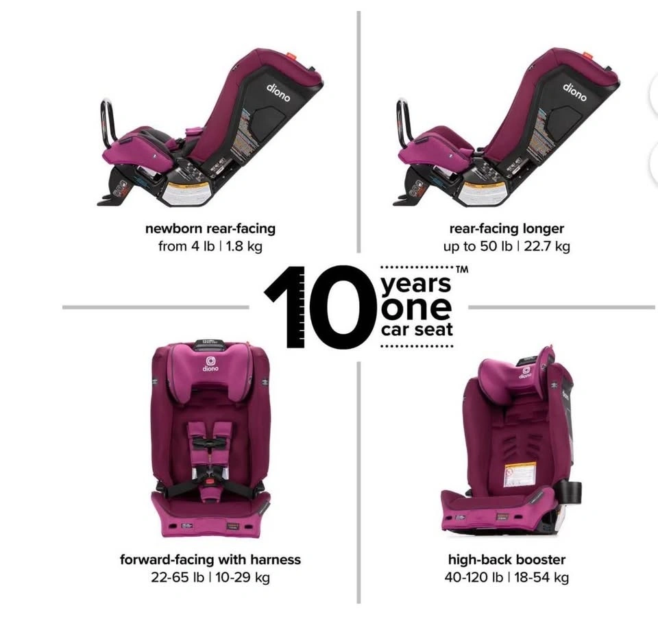 Diono Radian 3RXT All-in-One Convertible Car Seat in Purple Plum. Open box but never used. Everything is clean and in excellent condition. Rear-facing, forward-facing, and booster seat. One of the safest slim-fit car seats on the market. Fits 3 across in many vehicles. Steel frame design for extra safety. Easy to install. Selling for $300. Perfect for parents looking for a high-quality car seat at a great price. Pickup: Ajax. Also occasionally available in Scarborough.