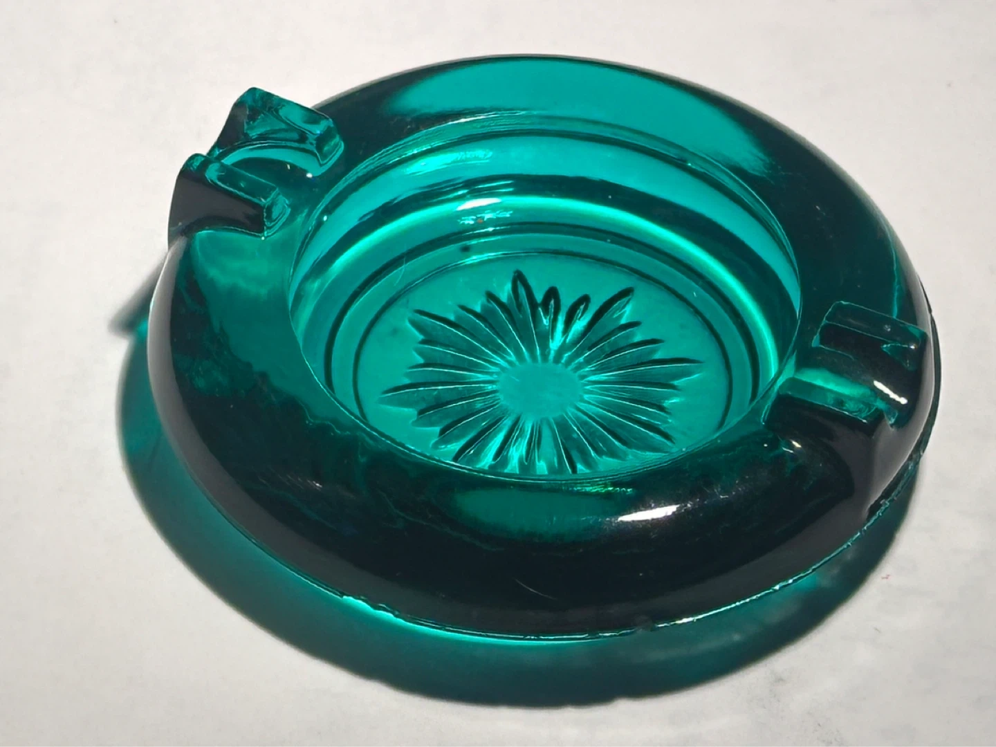 Small Mid Century Aqua Blue Glass Ashtray