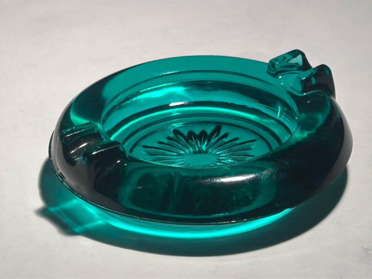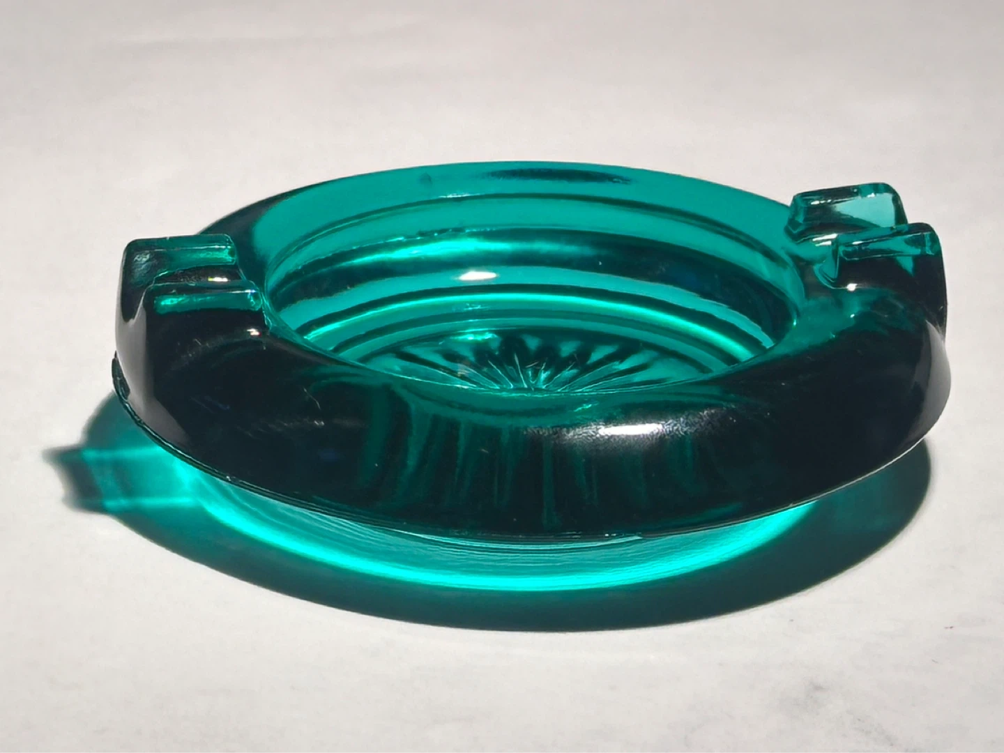 Small Mid Century Aqua Blue Glass Ashtray