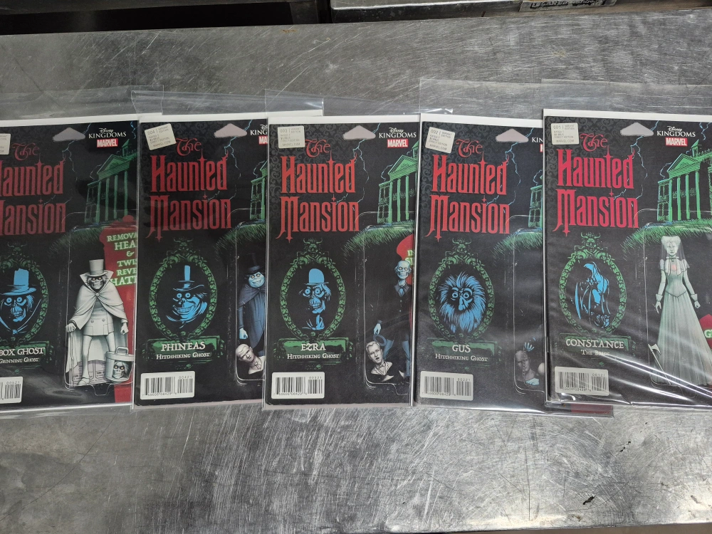 Selling a set of Disney Kingdoms Haunted Mansion Marvel comic books. Includes Box Ghost, Phineas, Ezra, Gus, and Constance. Great for any Disney or Marvel fan!