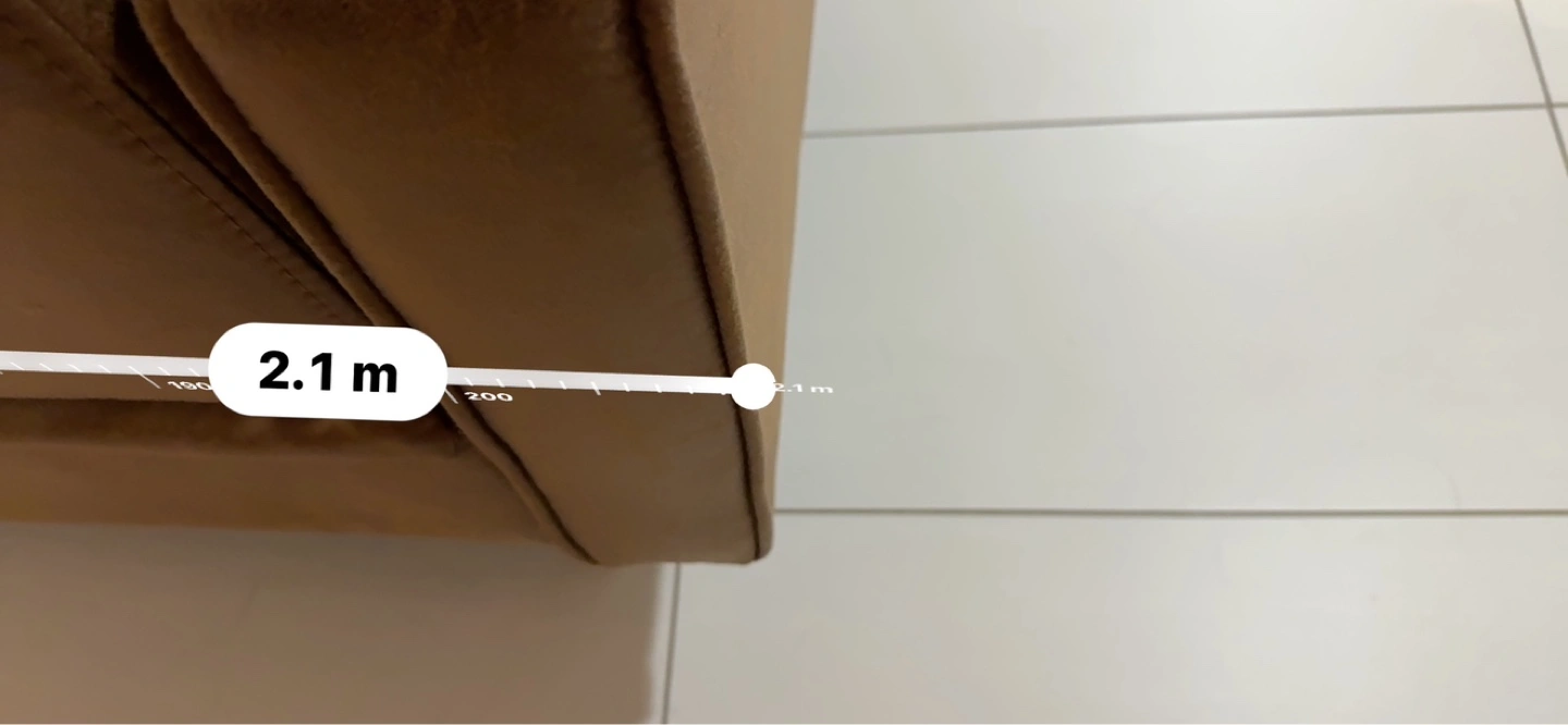 Approximately 2.1 m long and 1.21 m wide. Armrest height is 65 cm.