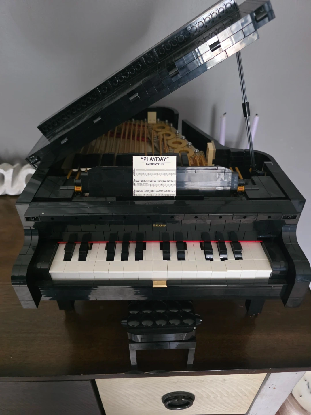 This is a LEGO Grand Piano model. It's black with white and red keys. Includes a bench and sheet music. Complete with Manual. Mint condition.
