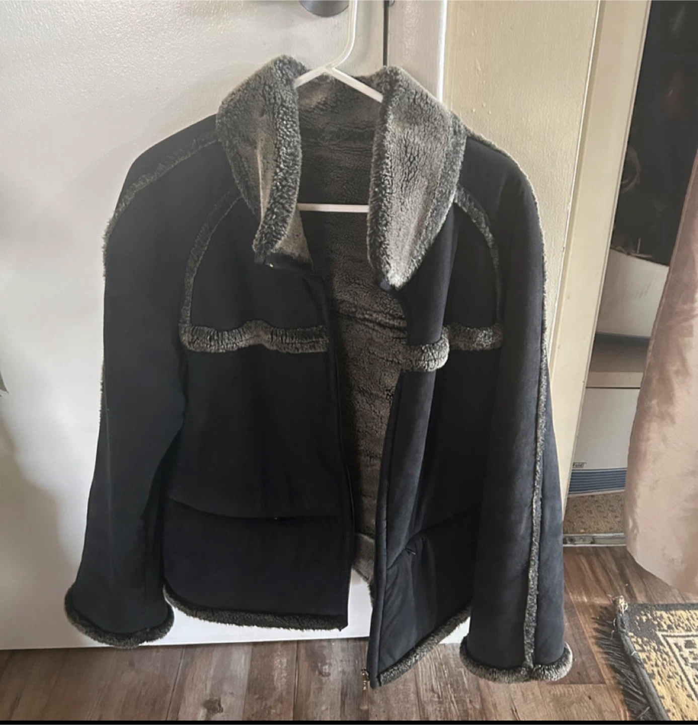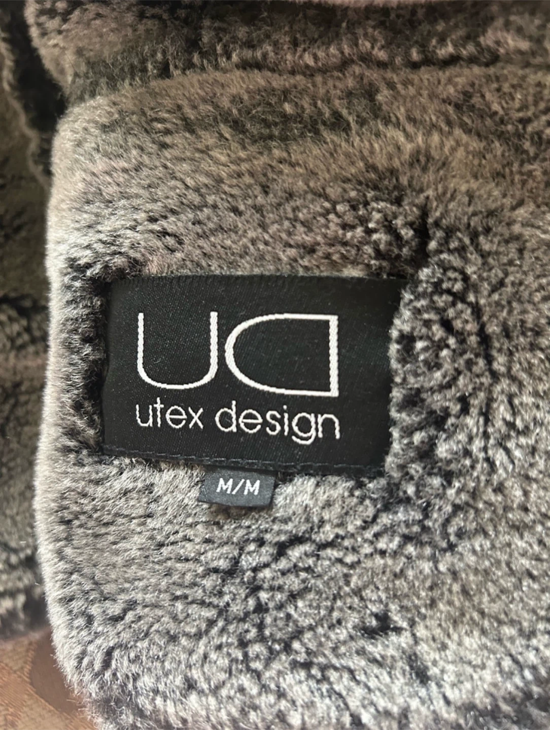 Cozy Utex Design jacket available in size M. It's a stylish and warm piece, perfect for cooler weather! The jacket features a soft, plush lining and a unique design.