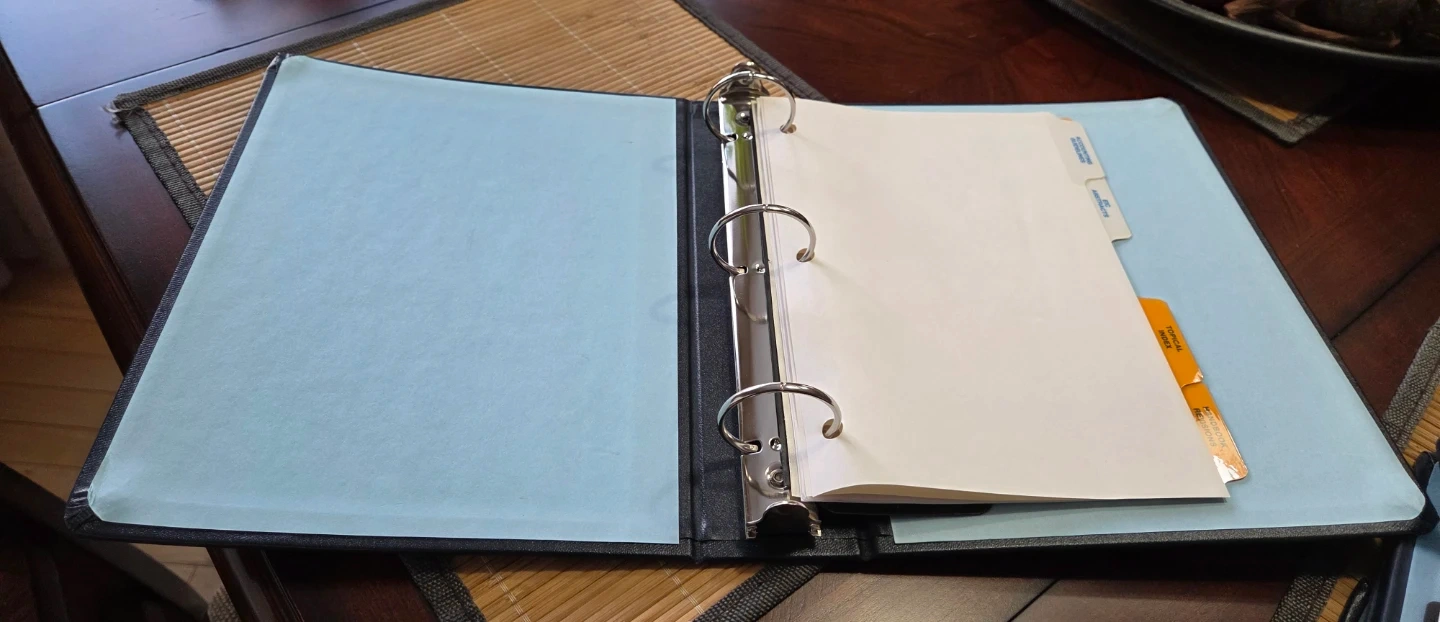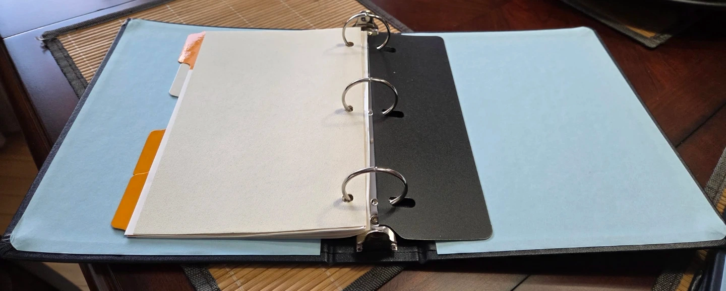A set of 3 dark blue, sturdy binders. Rings are high quality; all is very good condition and built to last.