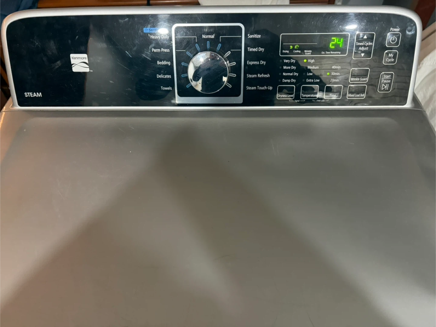 Kenmore clothes dryer with Steam & Sensor Dry, 27’