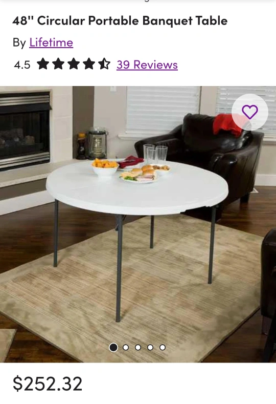 This Lifetime table is a 4-foot round folding table, perfect for extra seating or activities. While it has been used, it remains sturdy and reliable for all your needs.
