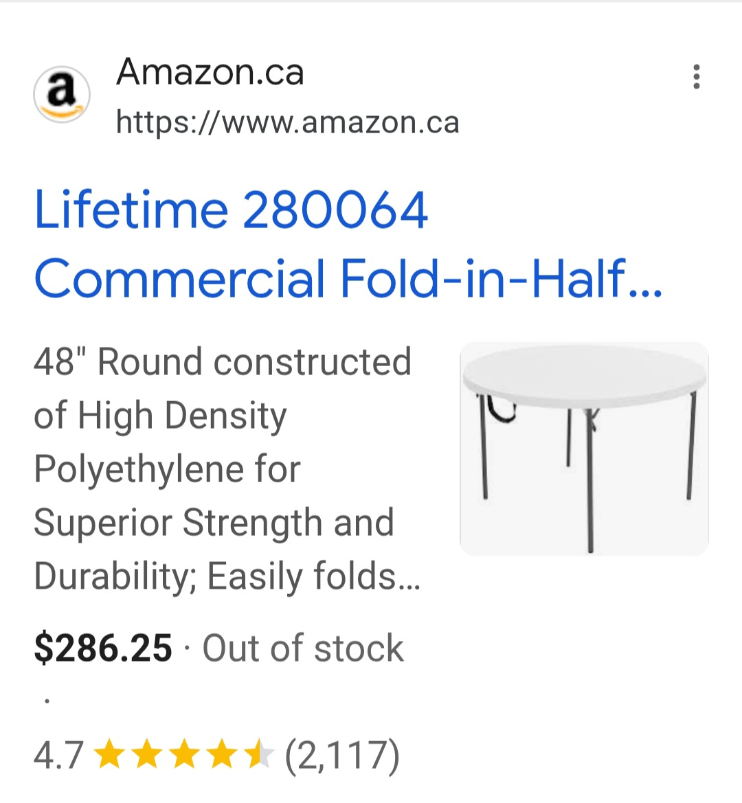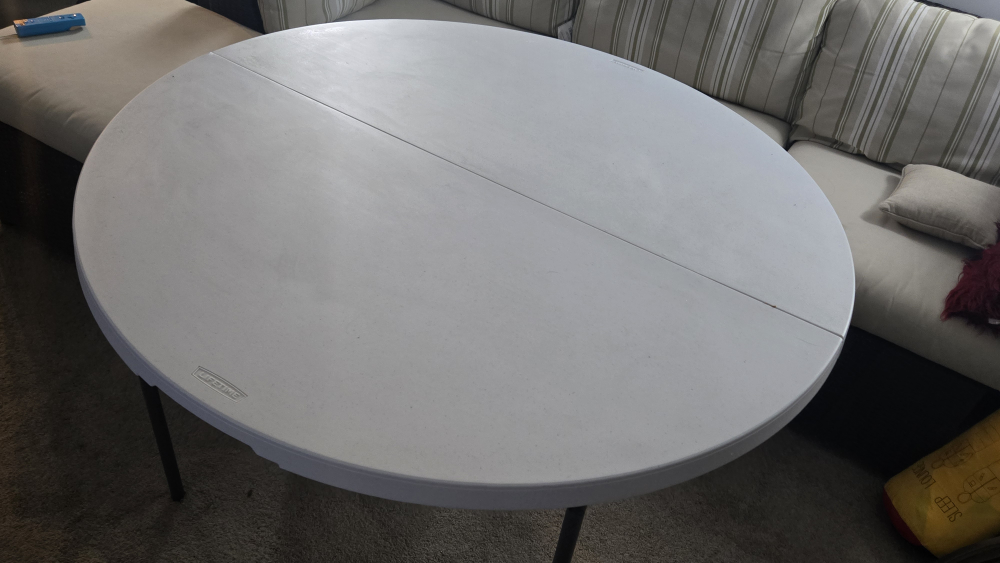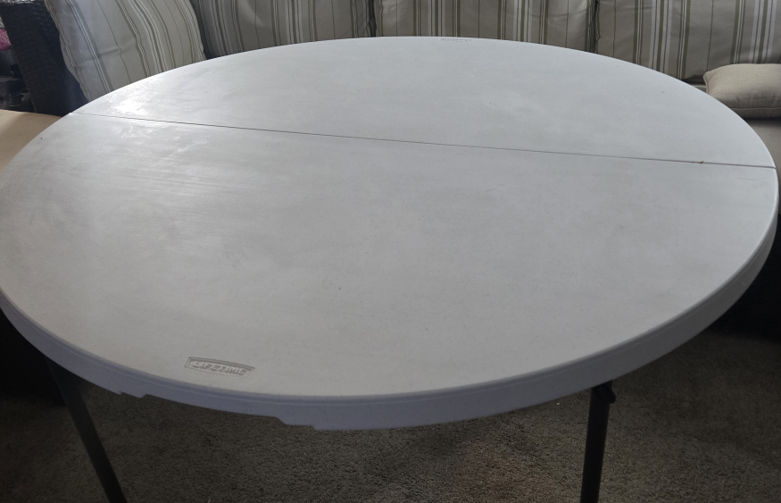 This Lifetime table is a 4-foot round folding table, perfect for extra seating or activities. While it has been used, it remains sturdy and reliable for all your needs.