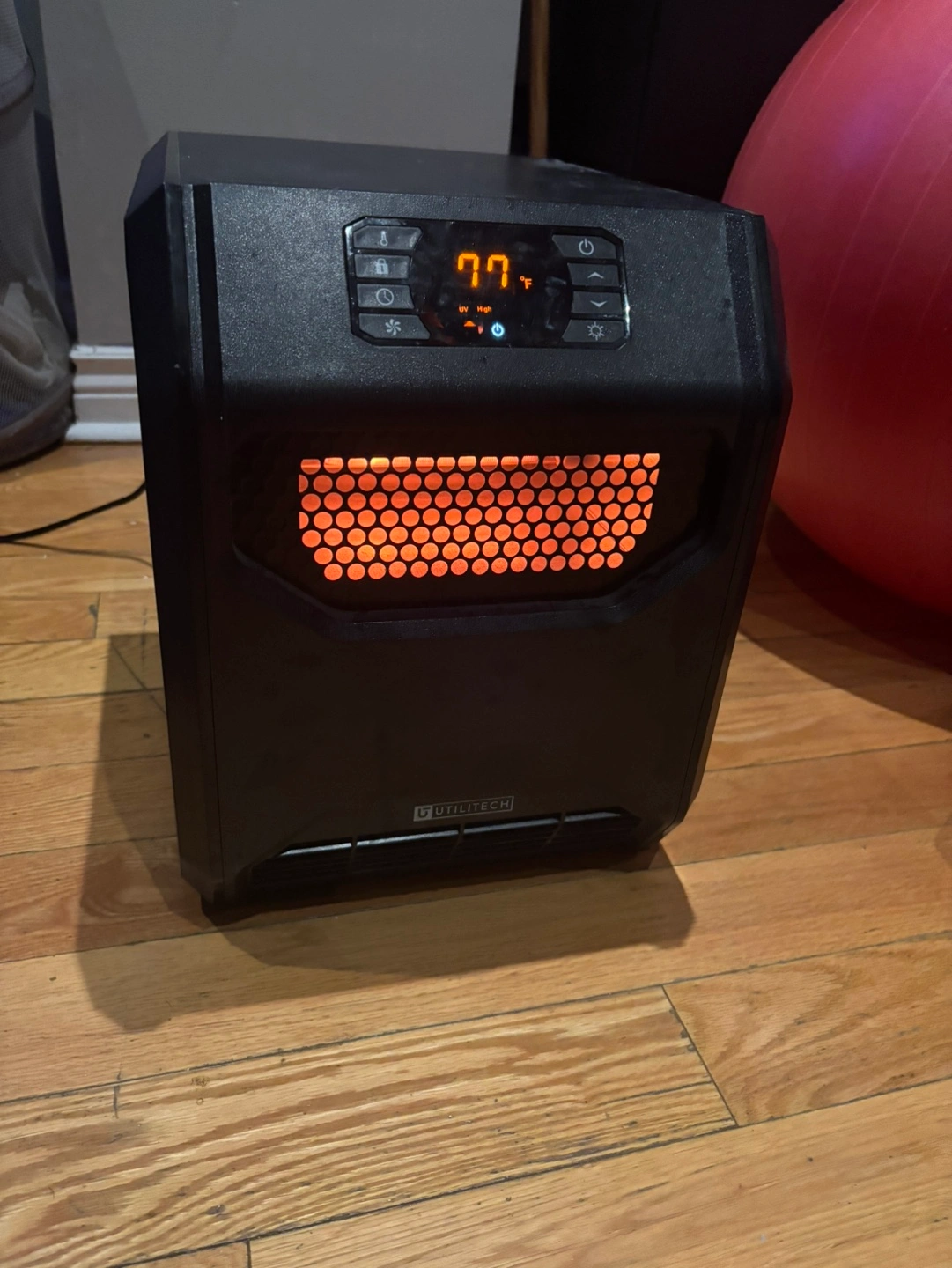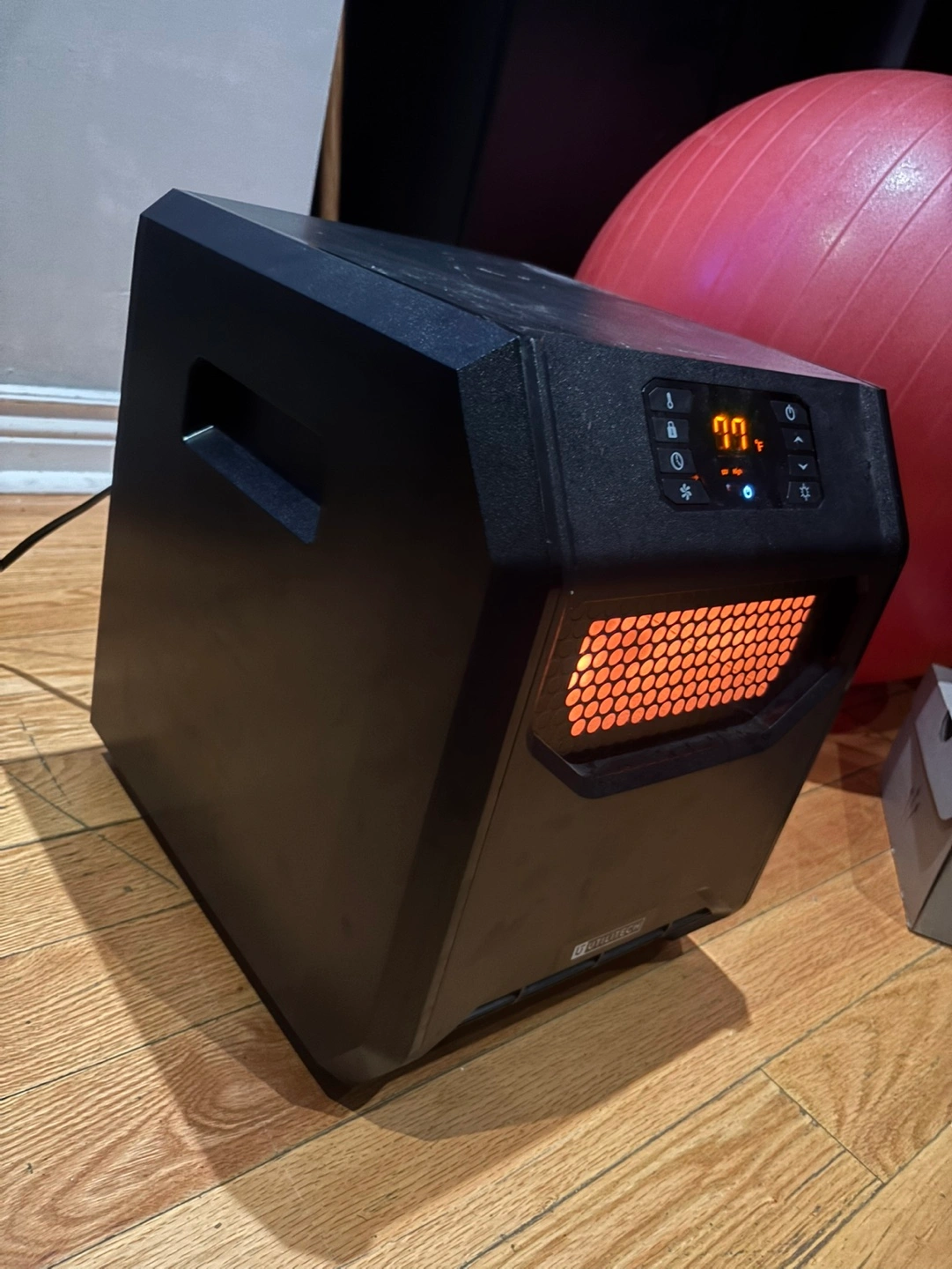 40Electric indoor space heater. Digital display and controls. Temperature sensor UV light setting. No remote. 1500- Watt