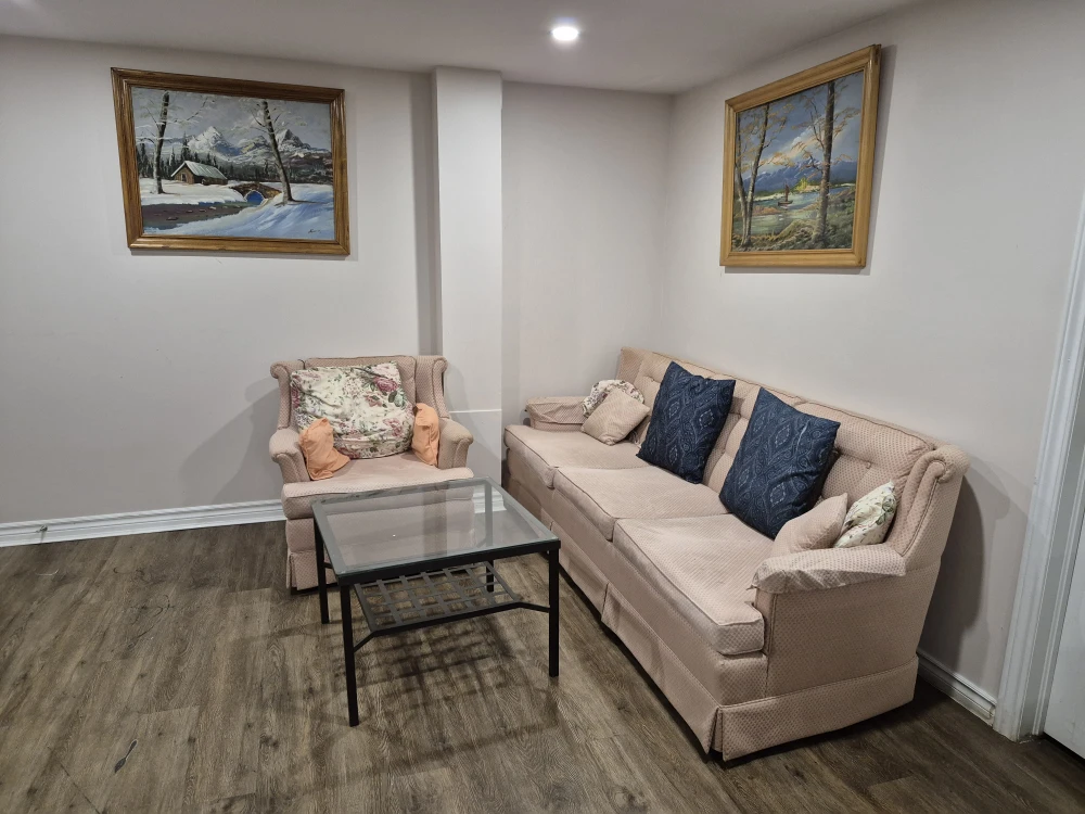A vintage sofa and armchair set. The set has a classic design with a comfortable feel. Perfect for adding a touch of retro charm to your living room or den. Its a pet and smoke free.