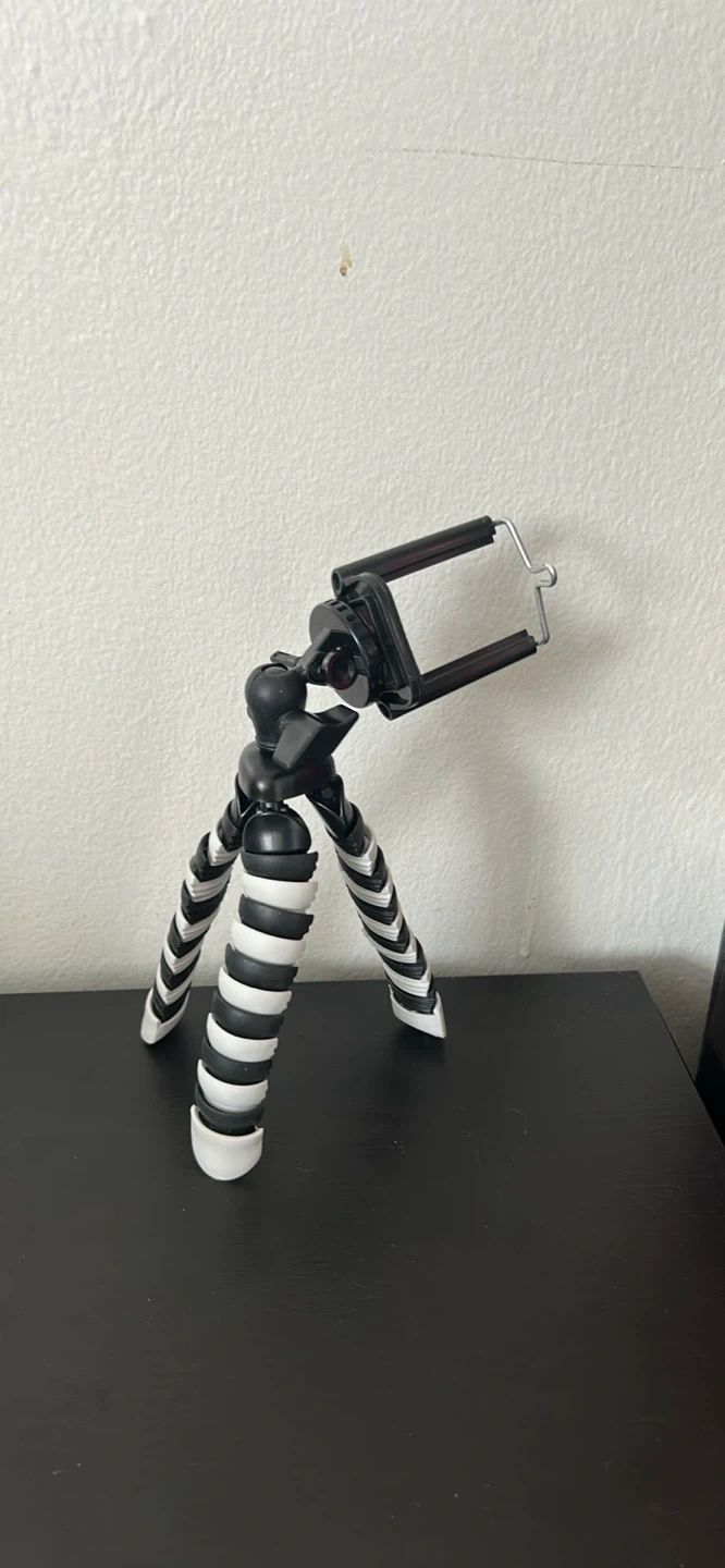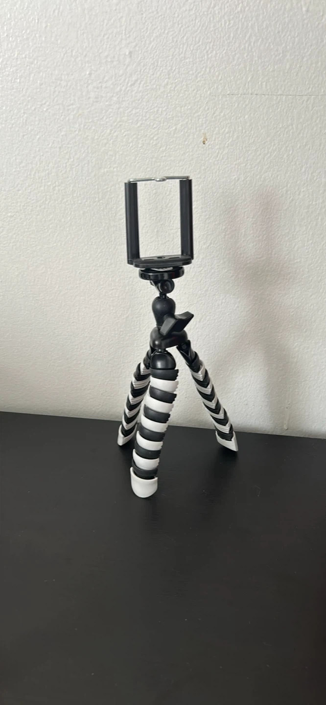 This is a black flexible tripod for smartphones. It has a bendable design for versatile positioning. Its compact size makes it handy for on-the-go use.