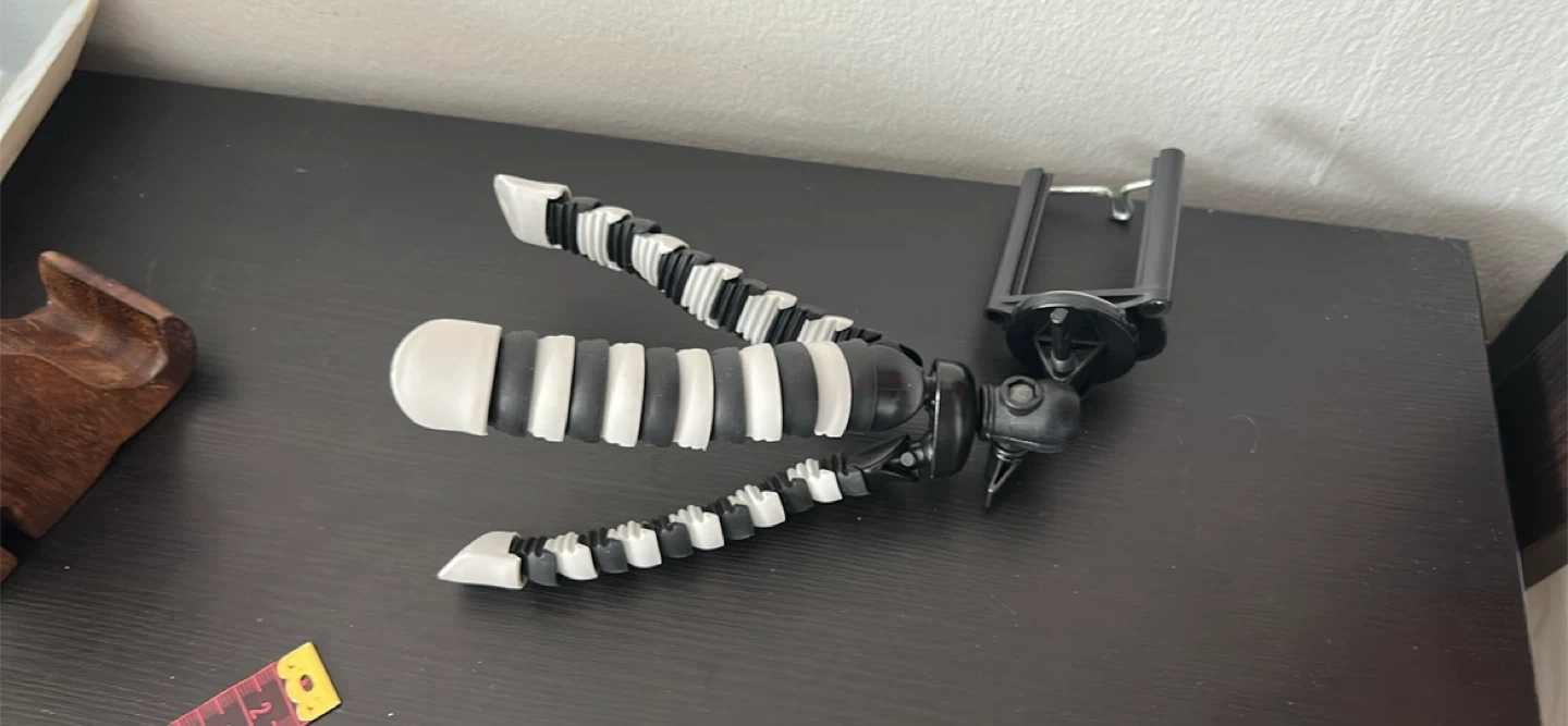 This is a black flexible tripod for smartphones. It has a bendable design for versatile positioning. Its compact size makes it handy for on-the-go use.