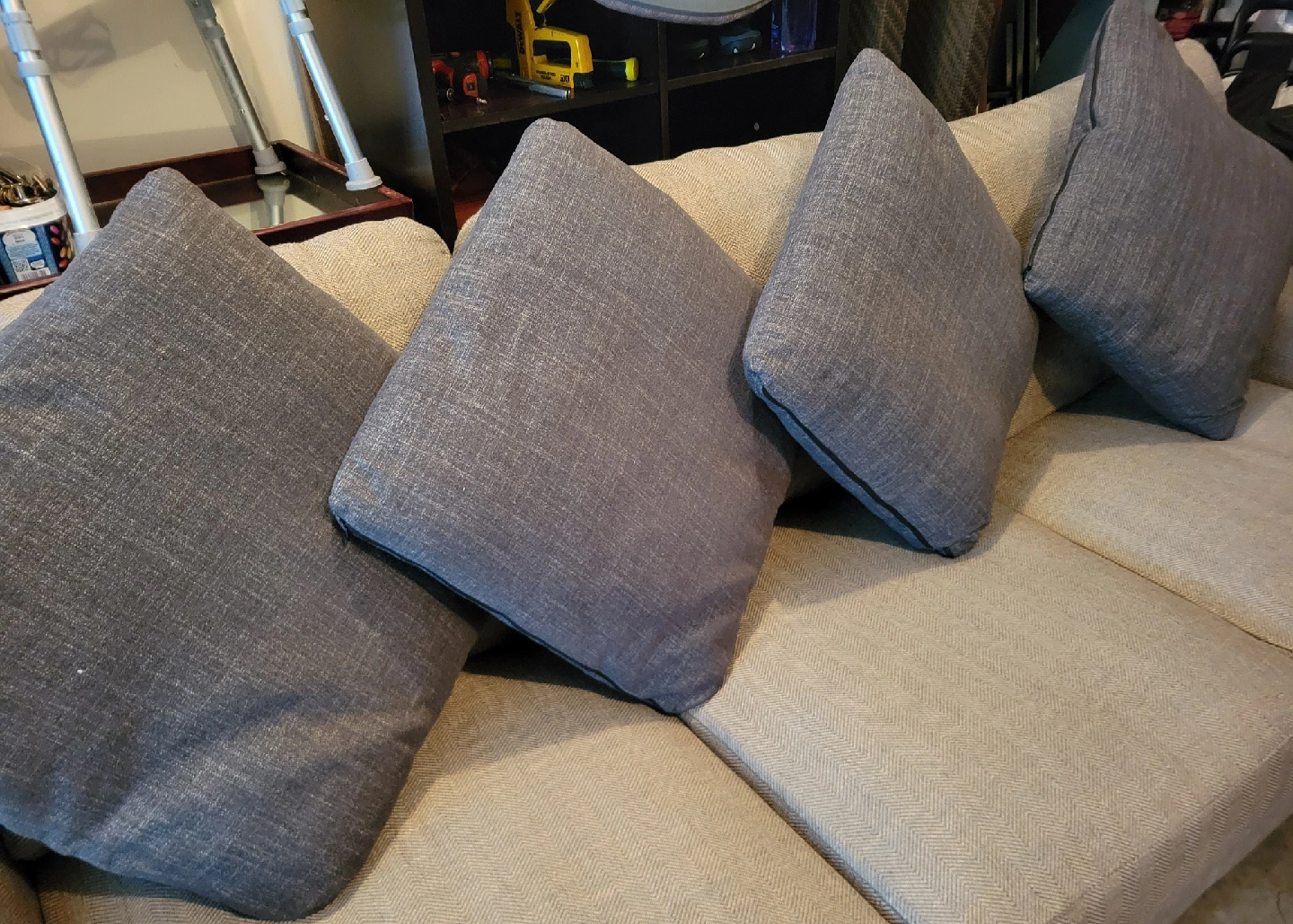 Set of 4 Grey Throw Pillows. $20 Each.