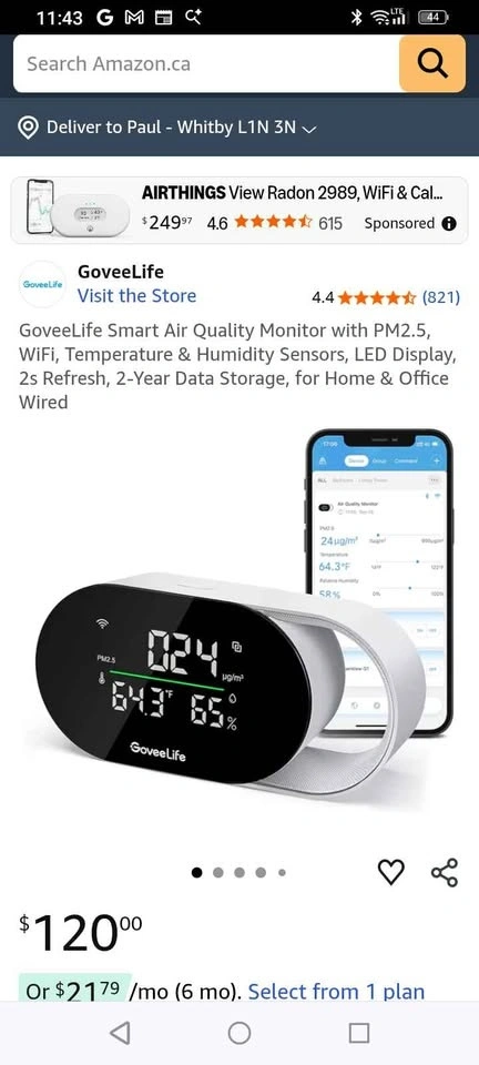 New, never used. GoveeLife Smart Air Quality Monitor with PM2.5, WiFi, Temperature & Humidity Sensors, LED Display, 2s Refresh, 2-Year Data Storage, for Home & Office. Wired. You can find more descriptive information here: https://www.amazon.ca/GoveeLife-Temperature-Humidity-Indicator-Required/dp/B0BZV1XG6Y