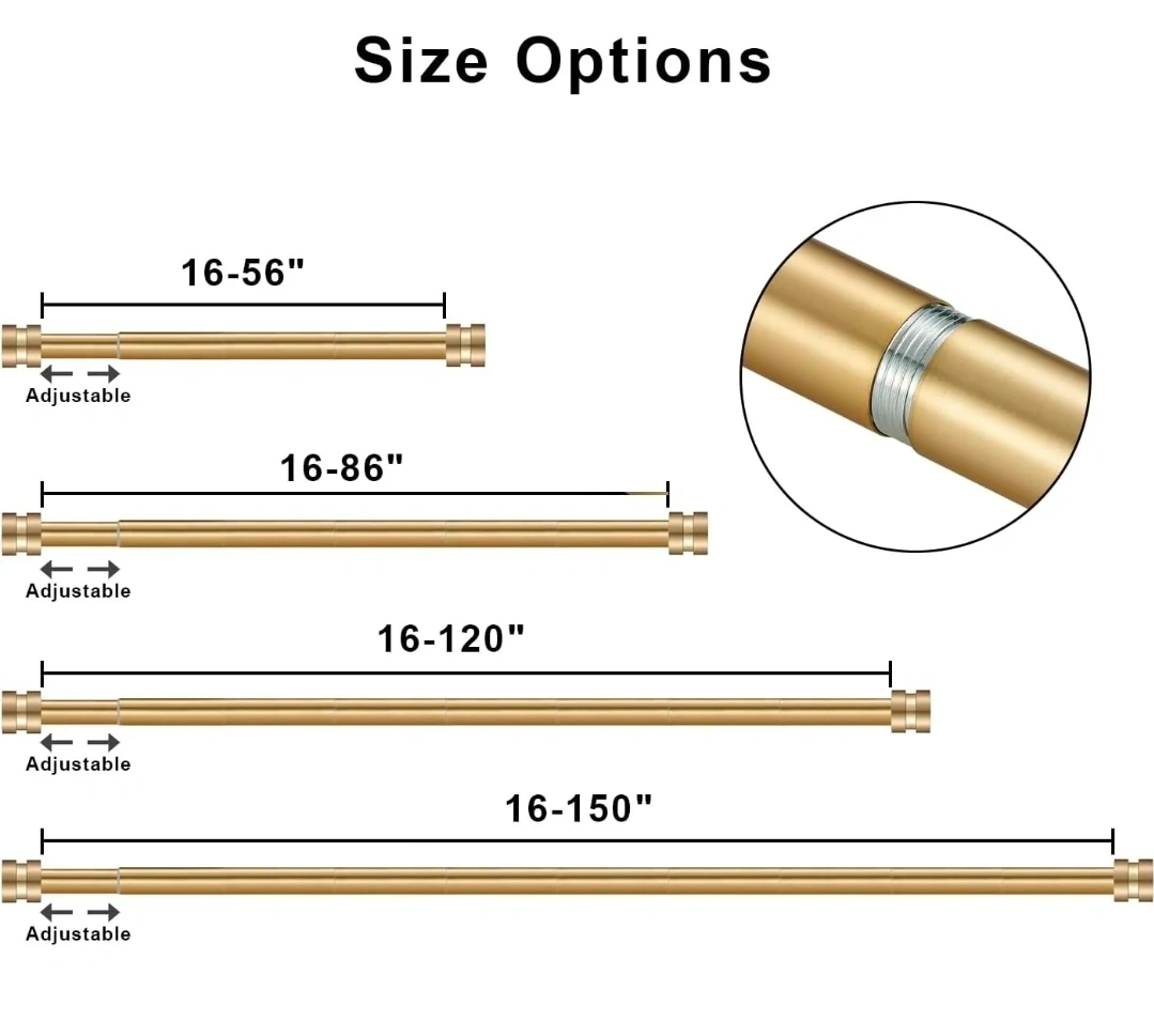16-86 inch Adjustable Curtain Rod Set, Warm Gold