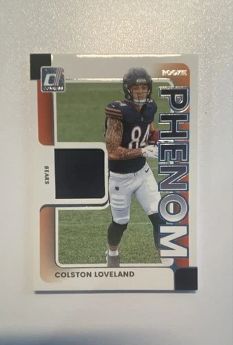 The 2025 Panini Donruss Rookie Phenom Jerseys Colston Loveland #RPJ-CLD trading card is a highly sought-after collectible for football fans. This card features a piece of memorabilia from the Chicago Bears rookie player Colston Loveland, making it a valuable addition to any sports trading card collection. The card is part of the Rookie Phenom Jerseys insert set. Let me know if you're interested!