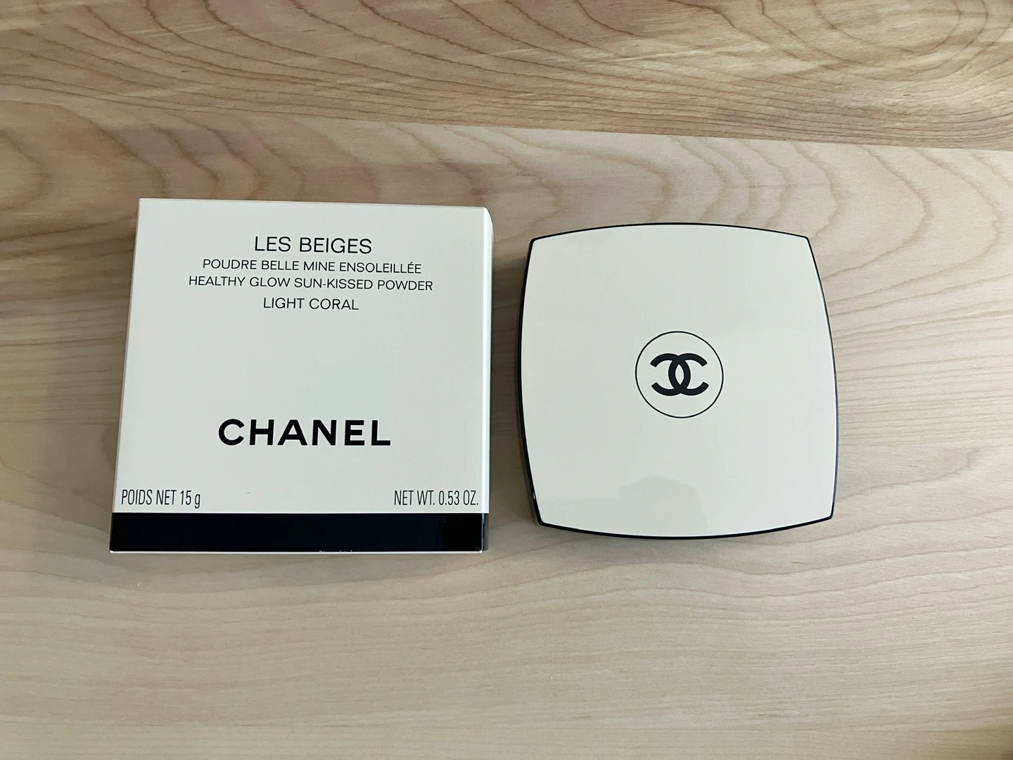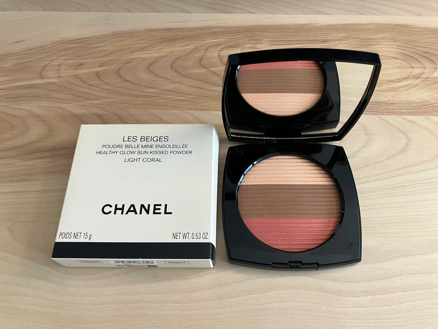 Chanel Les Beiges Healthy Glow Sun-Kissed Powder in Light Coral. Contains 15g net weight. This powder includes a mirror for easy application. Swatched once only.