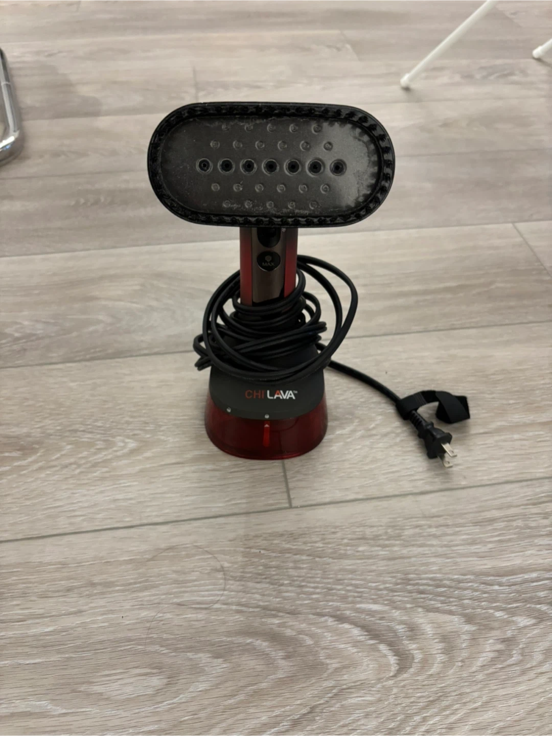 CHI Lava handheld garment steamer. It's great for quickly de-wrinkling clothes. Unit has a power indicator light. Bought from Costco about 1 year ago. Only used a few times, it’s in excellent condition.