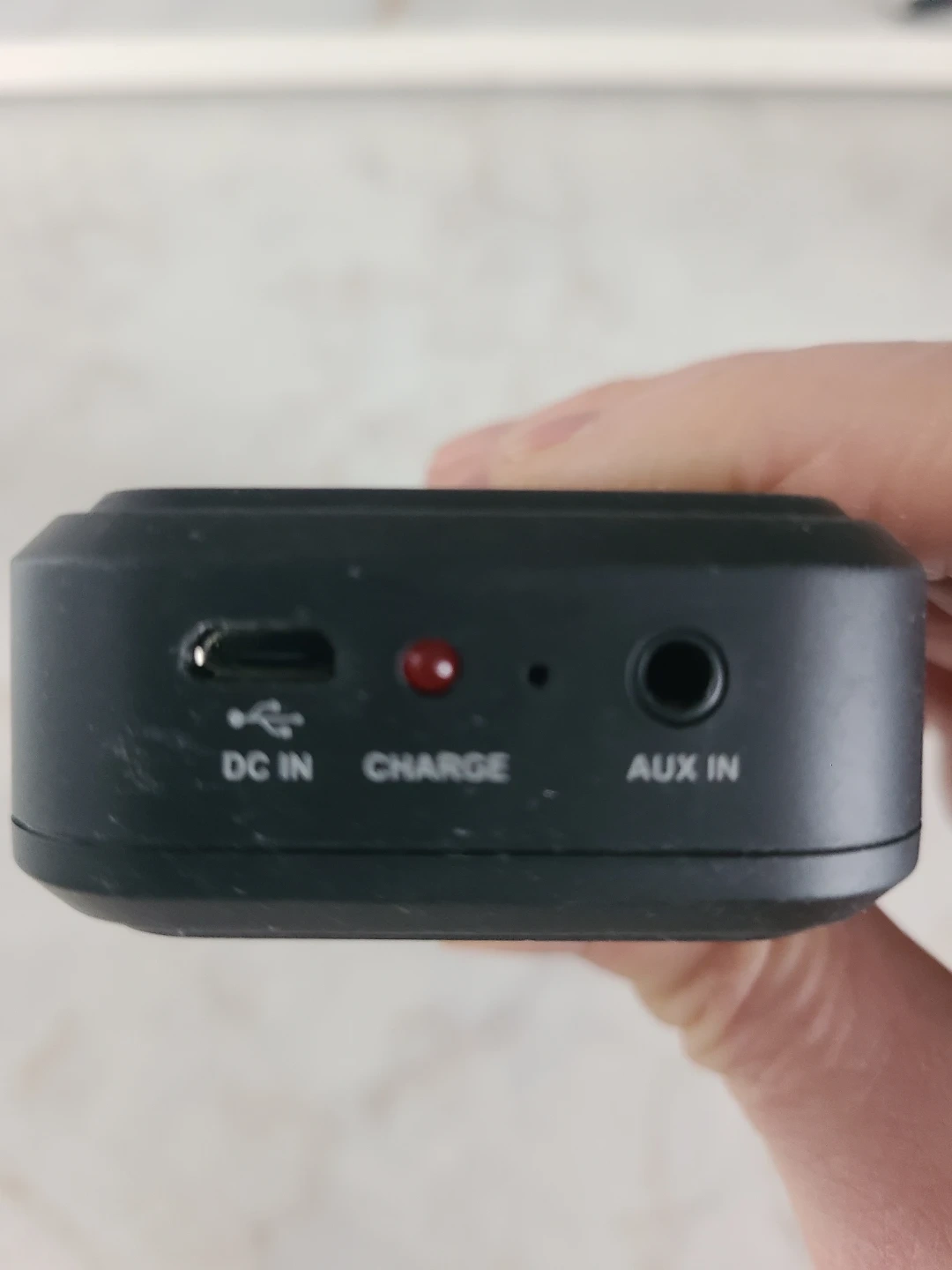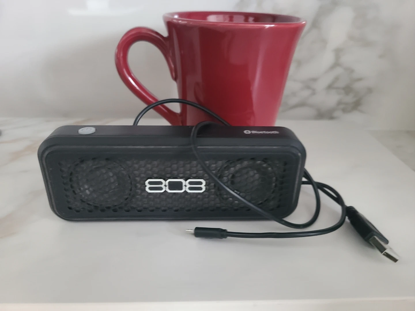 This is a black 808 portable Bluetooth speaker. It's compact and ready for tunes on the go. It has DC in and Aux in ports. Works great!!!