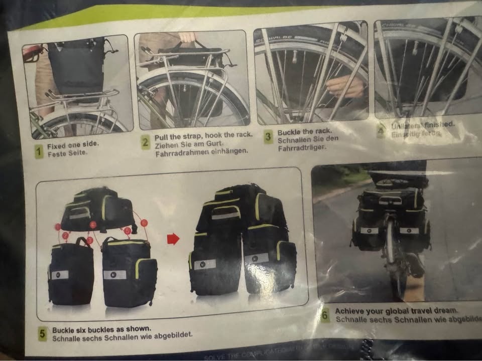 High-quality 3-in-1 bike pannier bag set perfect for commuting, touring, or daily rides. This versatile bag mounts securely to your bicycle cargo rack and easily converts into a shoulder bag or laptop bag when off the bike.